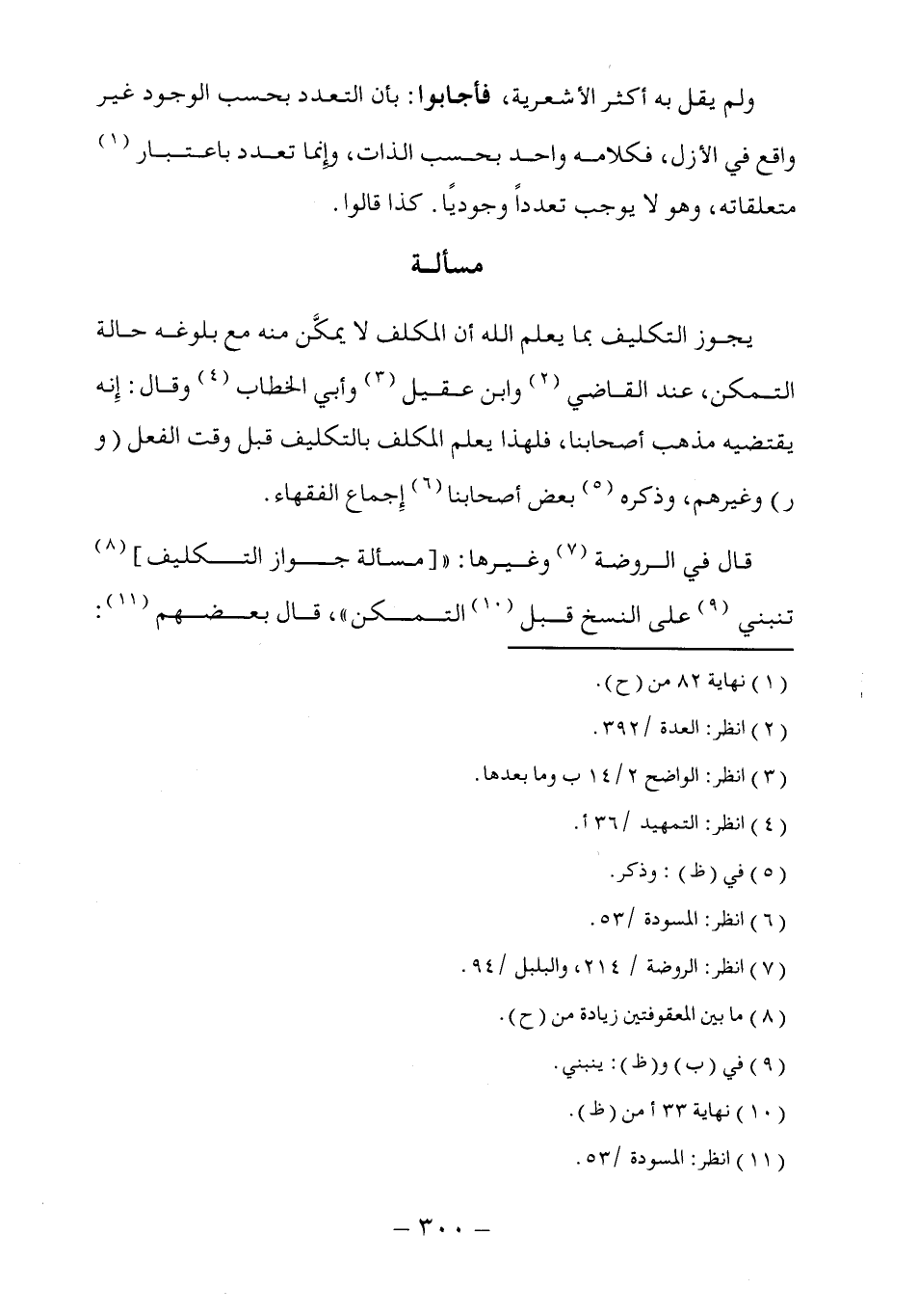 قال في الروضة (٧) وغيرها: " [مسألة جواز التكليف] (٨) تنبني (٩) على النسخ قبل (١٠) التمكن"، قال بعضهم (١١):