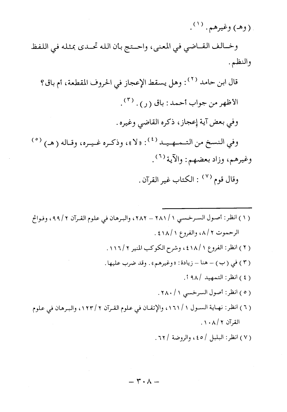 قال ابن حامد (٢): وهل يسقط الإِعجاز في الحروف المقطعة، أم باق؟