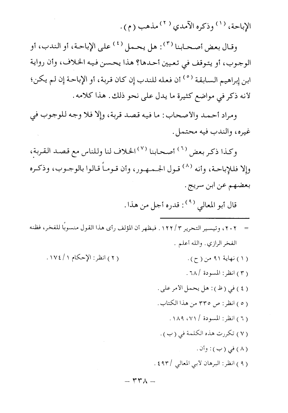 الإِباحة، (١) وذكره الآمدي (٢) مذهب (م).