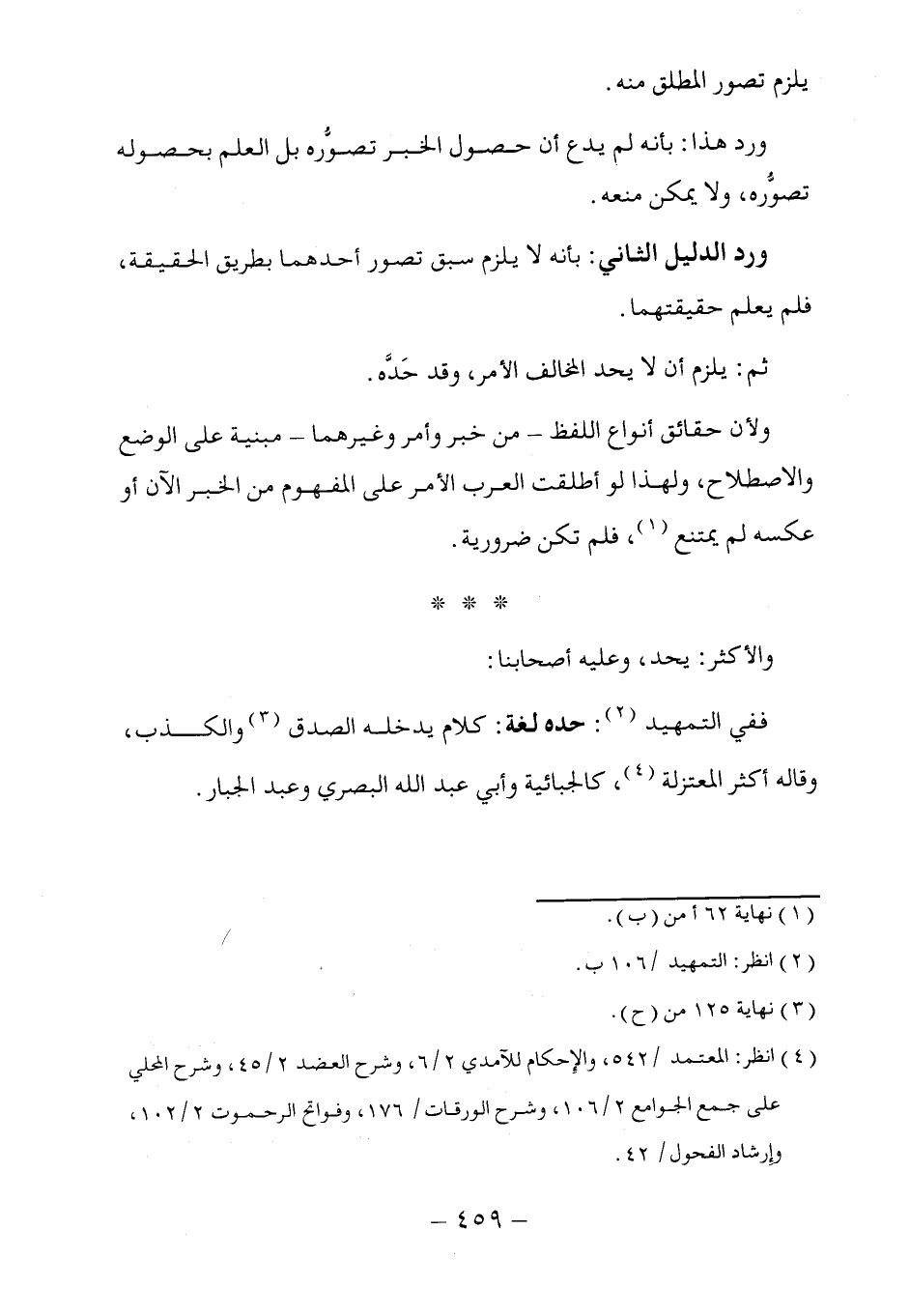 (٤) انظر: المعتمد/ ٥٤٢، والإِحكام للآمدي ٢/ ٦، وشرح العضد ٢/ ٤٥، وشرح المحلي على جمع الجوامع ٢/ ١٠٦، وشرح الورقات/ ١٧٦، وفواتح الرحموت ٢/ ١٠٢، وإِرشاد الفحول/ ٤٢.