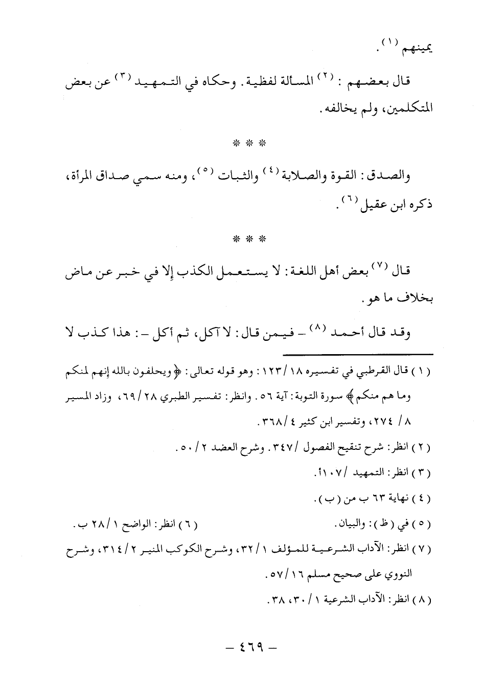 (٧) انظر: الآداب الشرعية للمؤلف ١/ ٣٢، وشرح الكوكب المنير ٤/ ٣١٢، وشرح النووي على صحيح مسلم ١٦/ ٥٧.