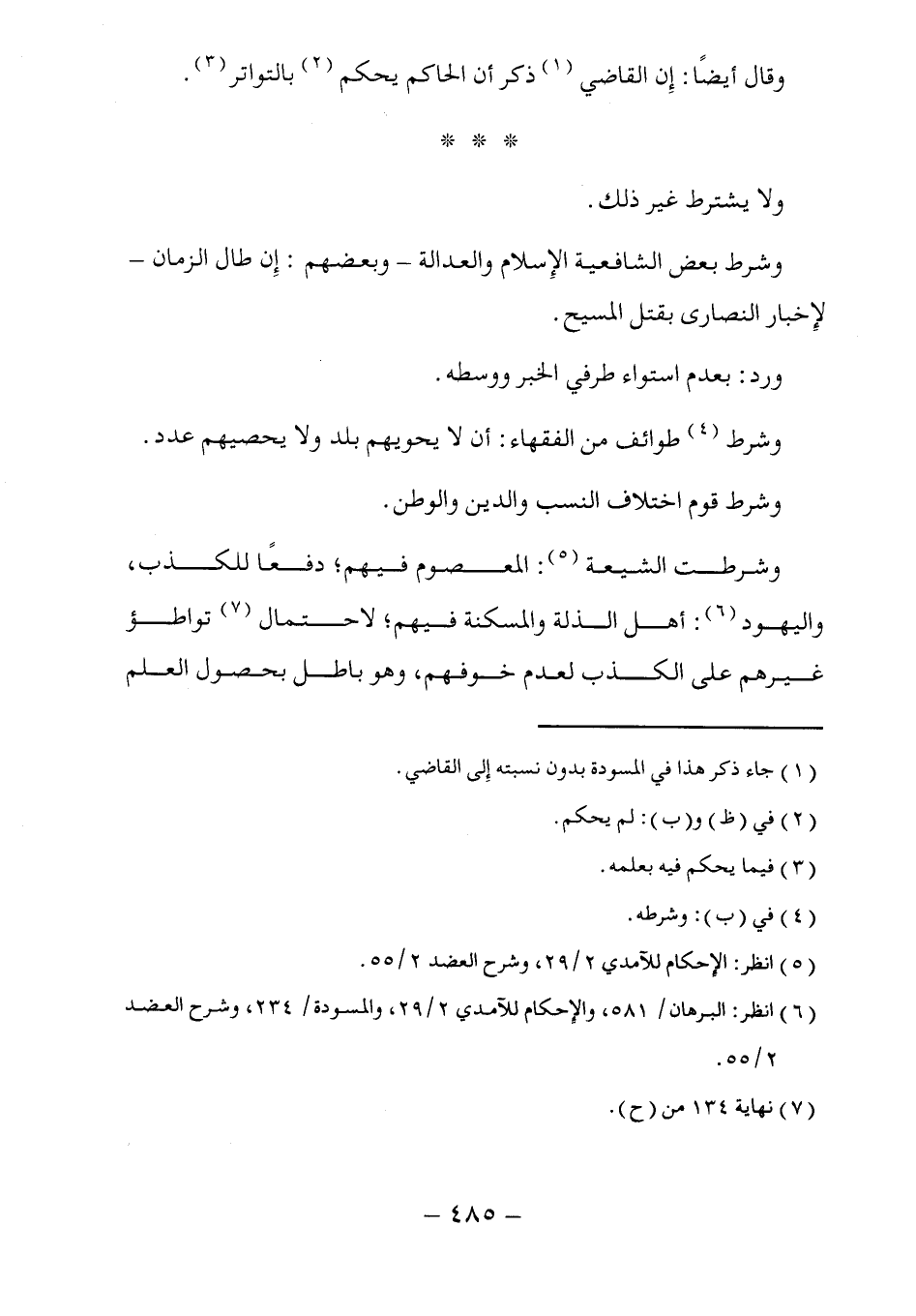 وشرطت الشيعة (٥): المعصوم فيهم؟ دفعًا للكذب، واليهود (٦): أهل الذلة والمسكنة فيهم؛ لاحتمال (٧) تواطؤ غيرهم على الكذب لعدم خوفهم، وهو باطل بحصول العلم
