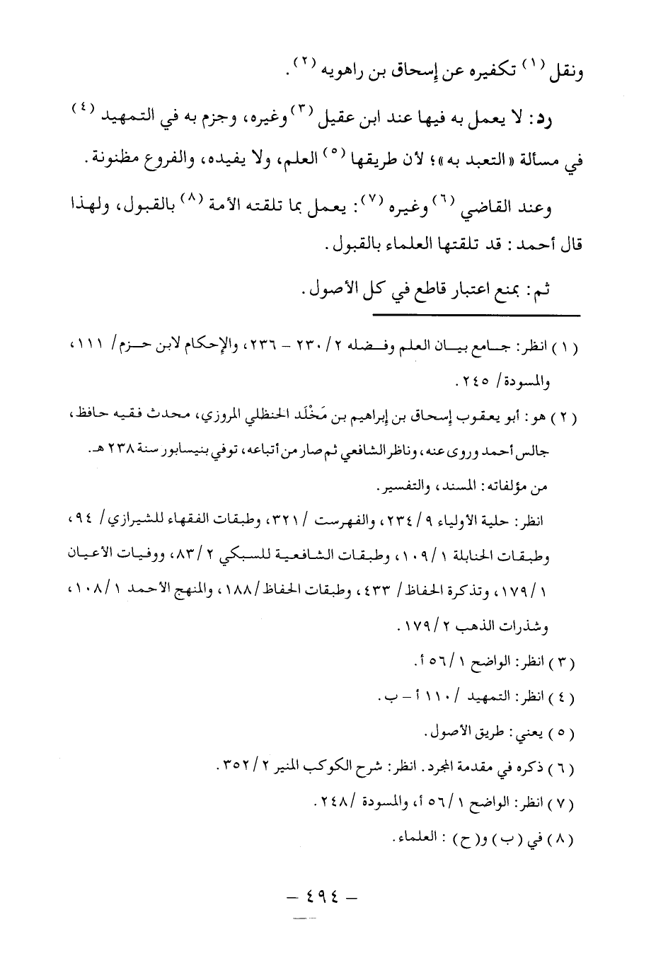 (١) انظر: جامع بيان العلم وفضله ٢/ ٢٣٠ - ٢٣٦، والإِحكام لابن حزم/ ١١١، والمسودة/ ٢٤٥.