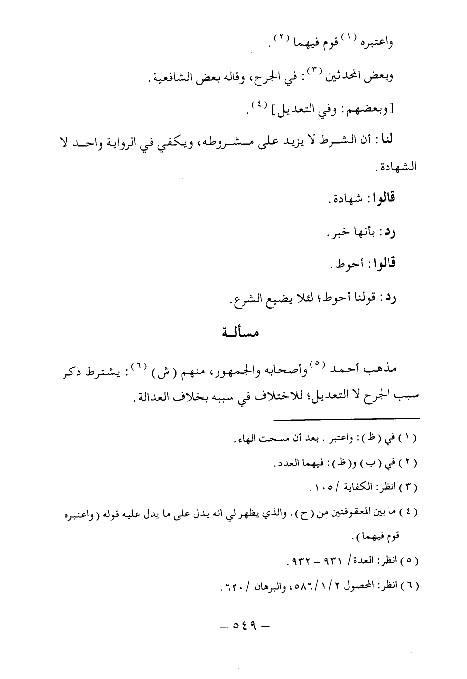 (٥) انظر: العدة / ٩٣١ - ٩٣٢.