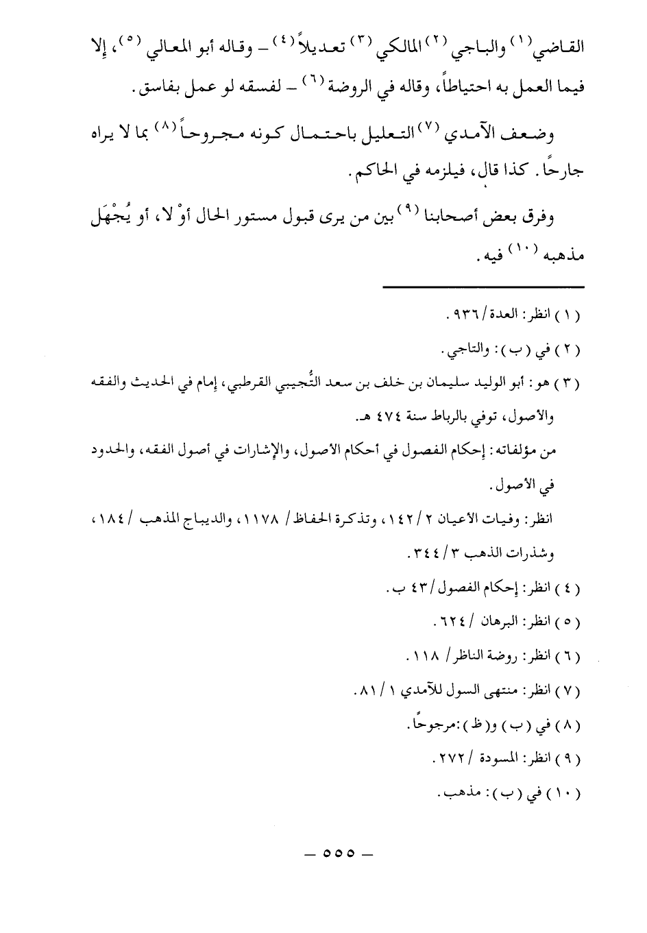 (٣) هو: أبو الوليد سليمان بن خلف بن سعد التُّجيبي القرطبي، إِمام في الحديث والفقه والأصول، توفي بالرباط سنة ٤٧٤ هـ.