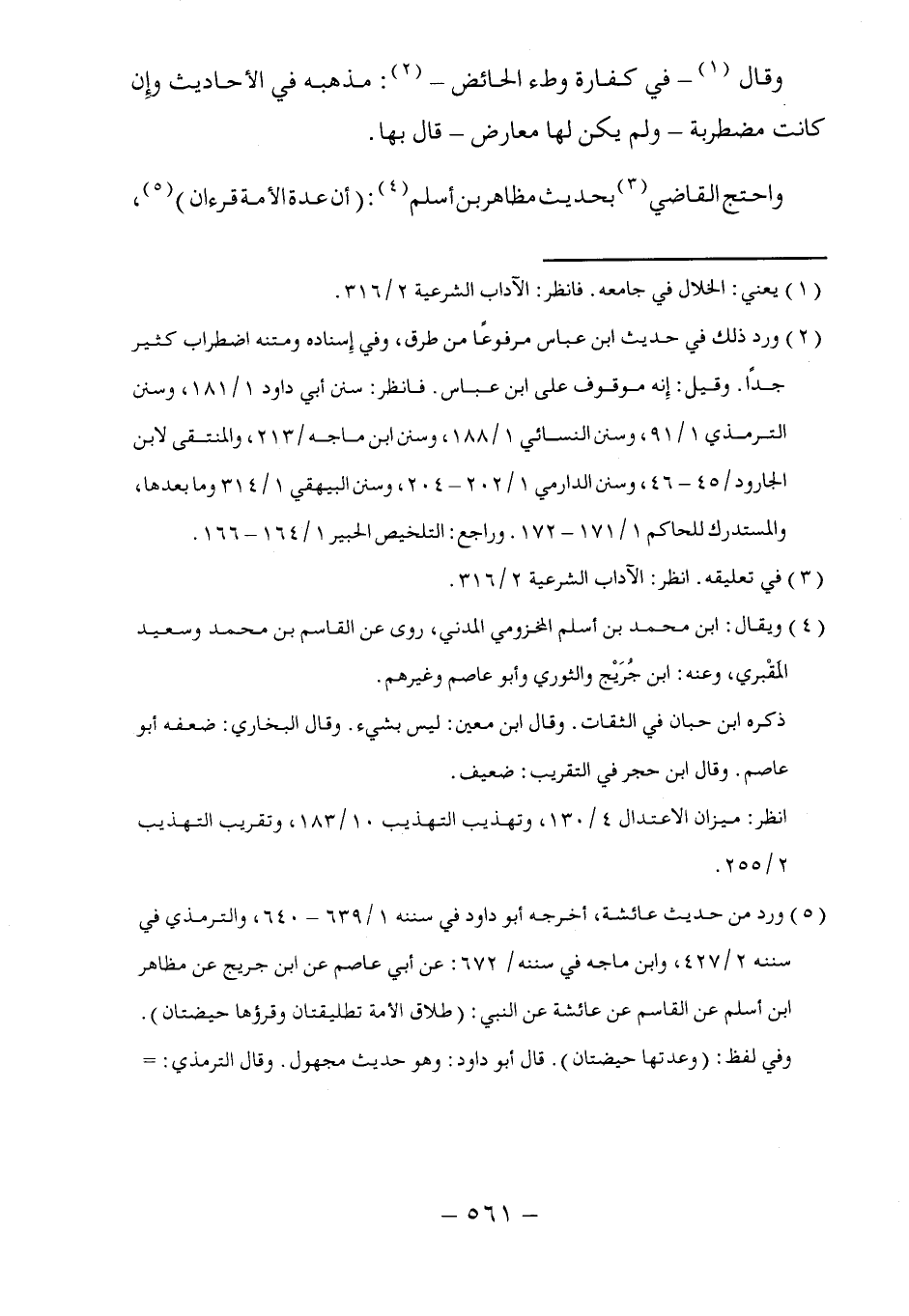 (٥) ورد من حديث عائشة، أخرجه أبو داود في سننه ١/ ٦٣٩ - ٦٤٠، والترمذي في سننه ٢/ ٤٢٧، وابن ماجه في سننه/ ٦٧٢: عن أبي عاصم عن ابن جريج عن مظاهر ابن أسلم عن القاسم عن عائشة عن النبي: (طلاق الأمة تطليقتان وقرؤها حيضتان). وفي لفظ: (وعدتها حيضتان). قال أبو داود: وهو حديث مجهول. وقال الترمذي:=
