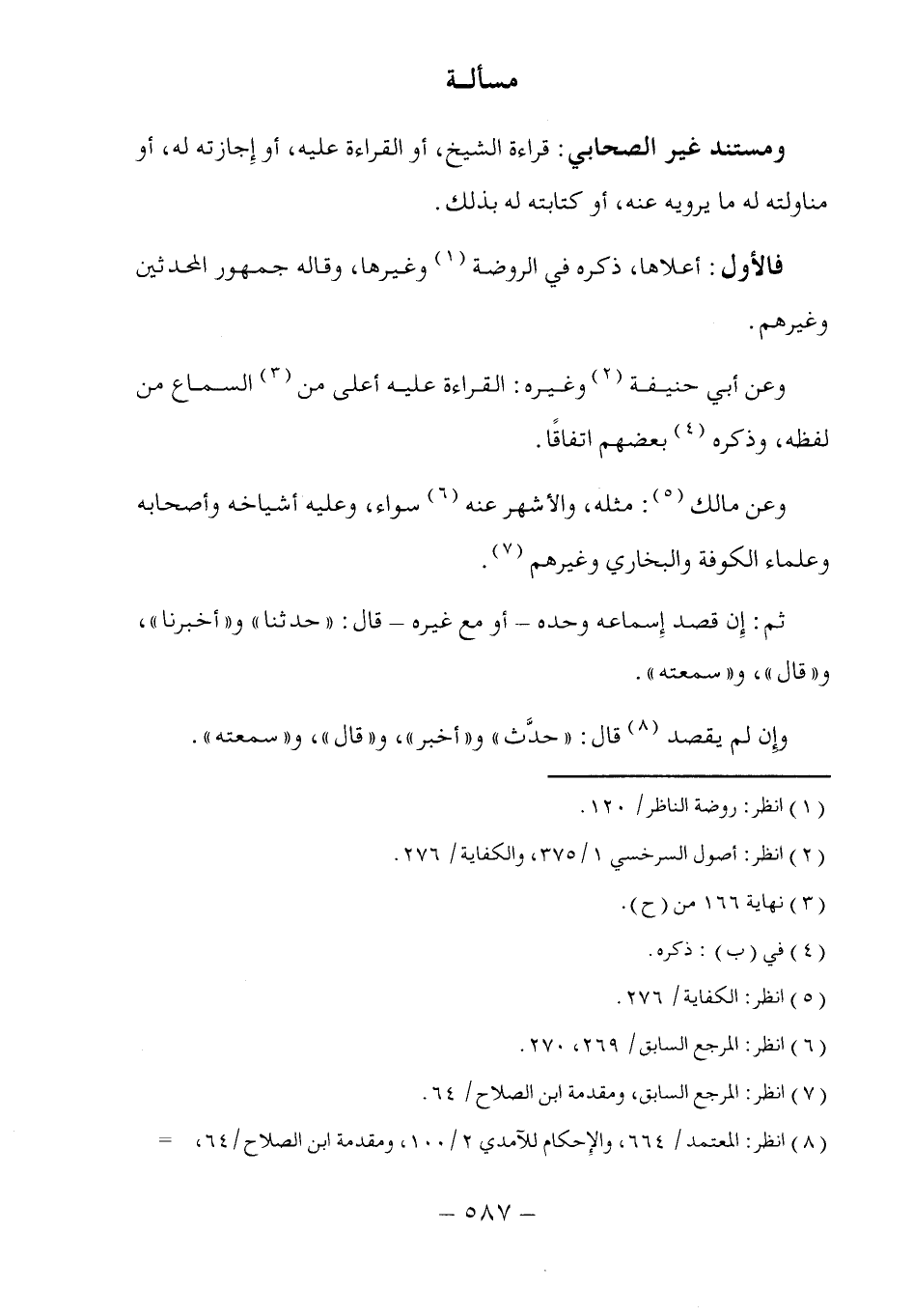 (٧) انظر: المرجع السابق، ومقدمة ابن الصلاح/ ٦٤.