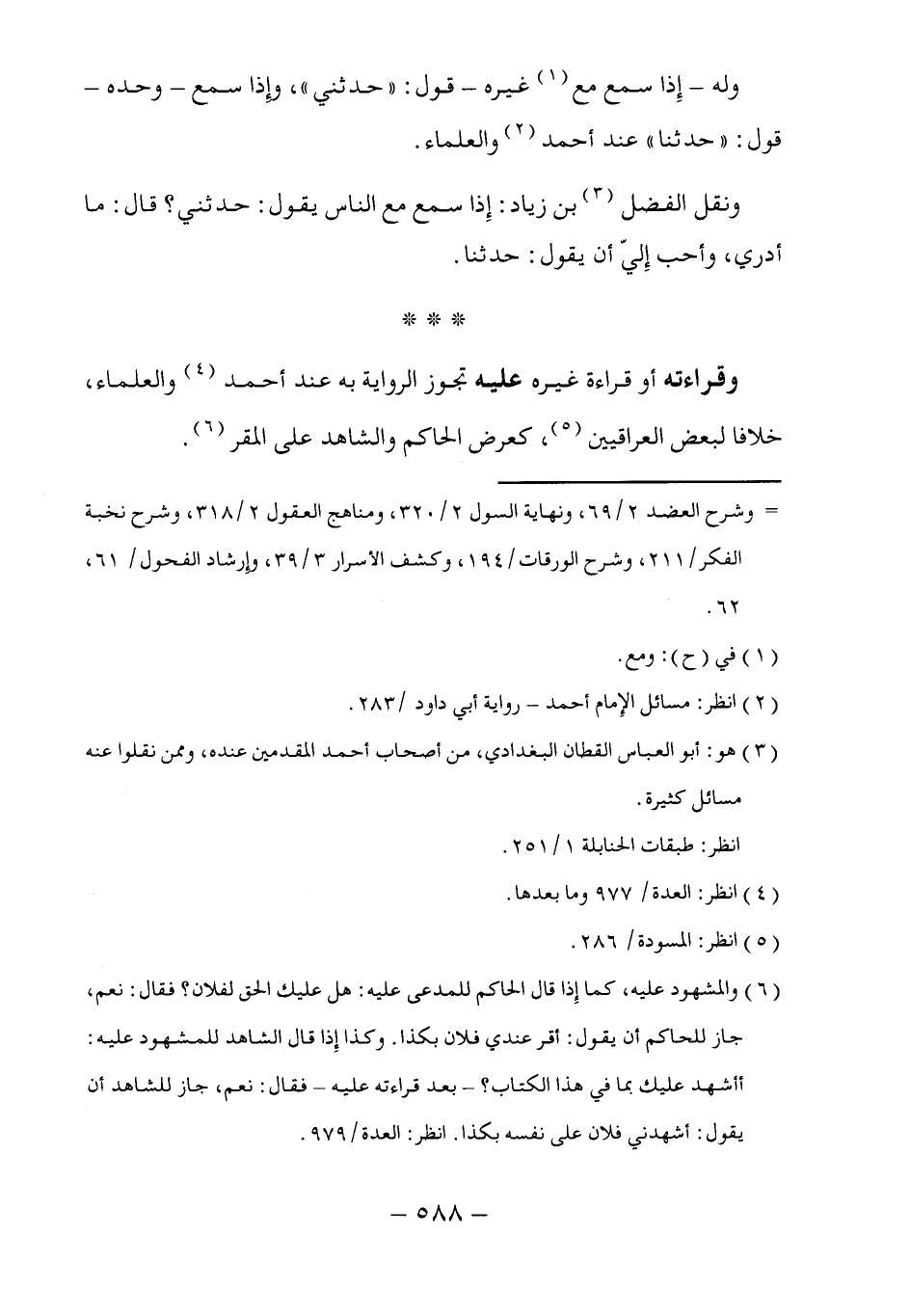 وقراءته أو قراءة غيره عليه تجوز الرواية به عند أحمد (٤) والعلماء، =خلافا لبعض العراقيين (٥)، كعرض الحاكم والشاهد على المقر (٦).