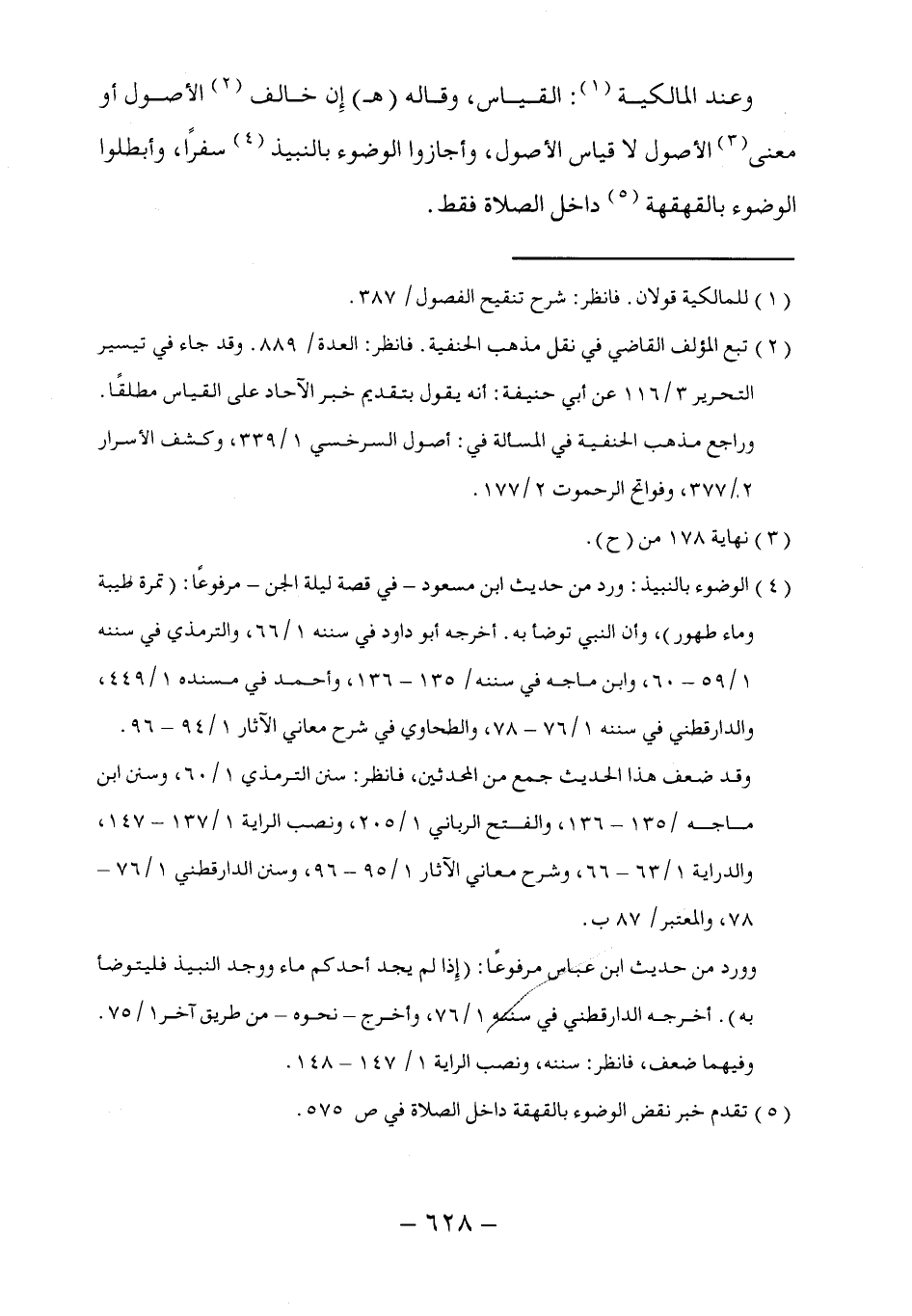 (٤) الوضوء بالنبيذ: ورد من حديث ابن مسعود -في قصة ليلة الجن- مرفوعاً: (تمرة طيبة وماء طهور)، وأن النبي توضأ به. أخرجه أبو داود في سننه ١/ ٦٦، والترمذي في سننه ١/ ٥٩ - ٦٠، وابن ماجه في سننه/ ١٣٥ - ١٣٦، وأحمد في مسنده ١/ ٤٤٩، والدارقطني في سننه ١/ ٧٦ - ٧٨، والطحاوي في شرح معاني الآثار ١/ ٩٤ - ٩٦.