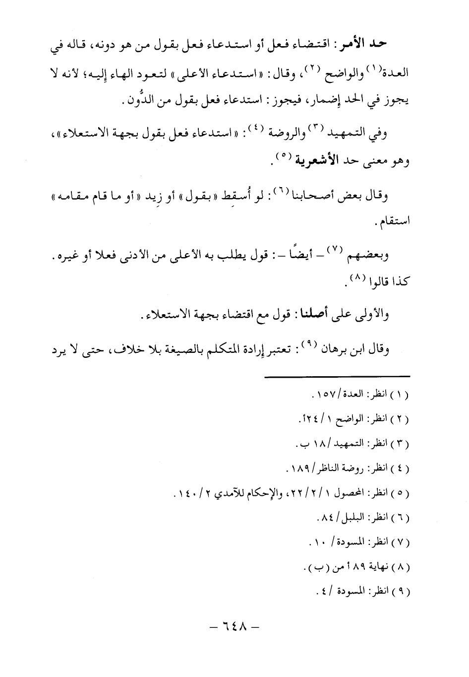 وفي التمهيد (٣) والروضة (٤): "استدعاء فعل بقول بجهة الاستعلاء"، وهو معنى حد الأشعرية (٥).