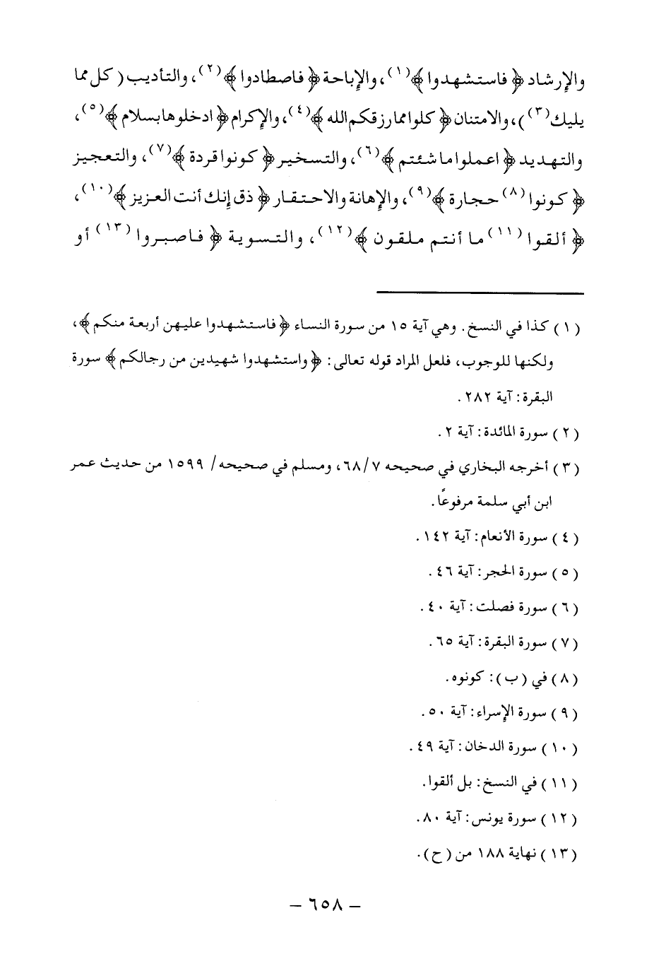 (١) كذا في النسخ. وهي آية ١٥ من سورة النساء (فاستشهدوا عليهن أربعة منكم)، ولكنها للوجوب، فلعل المراد قوله تعالى: (واشتهدوا شهيدين من رجالكم) سورة البقرة: آية ٢٨٢.