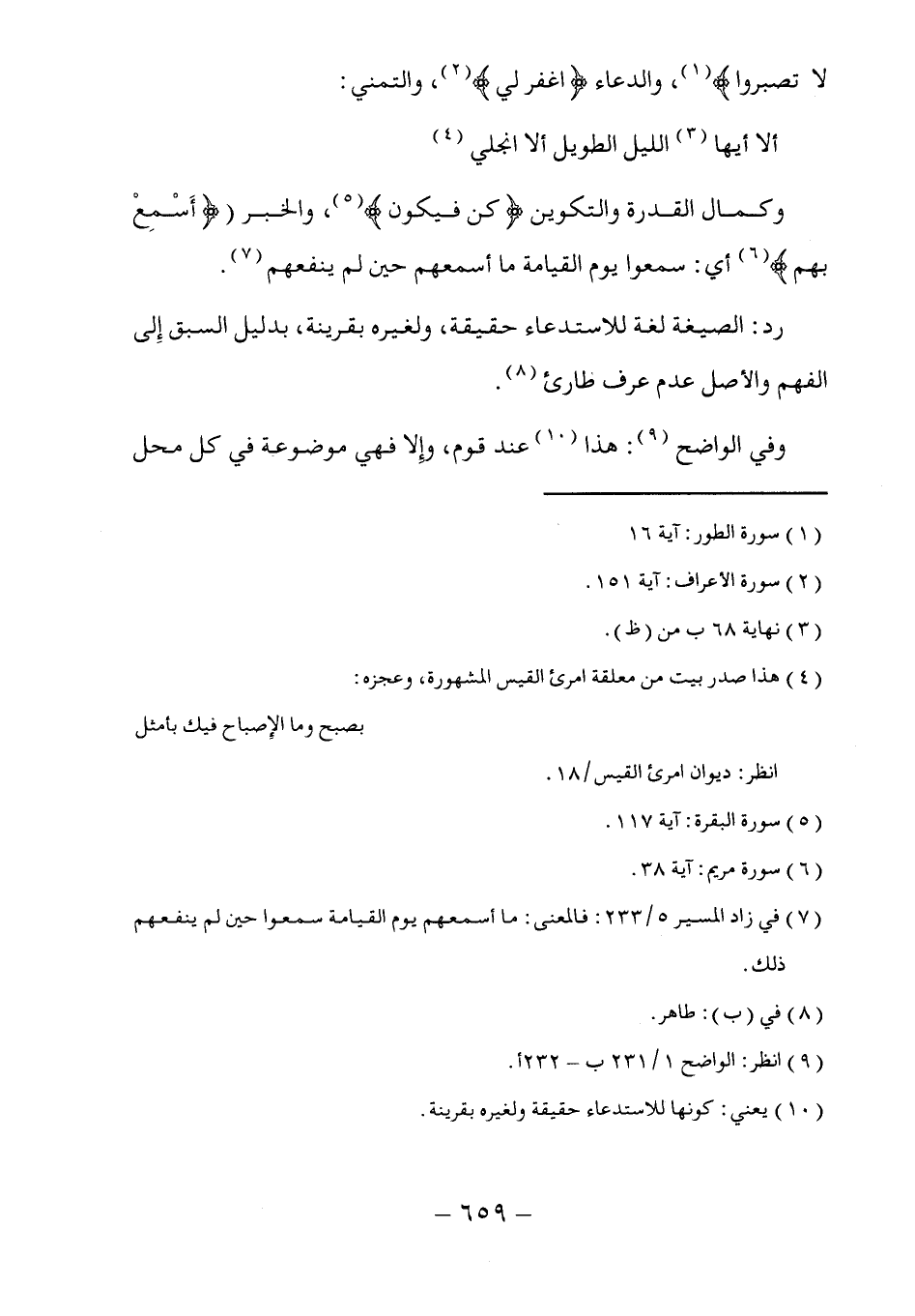 (١٠) يعني: كونها للاستدعاء حقيقة ولغيره بقرينة.