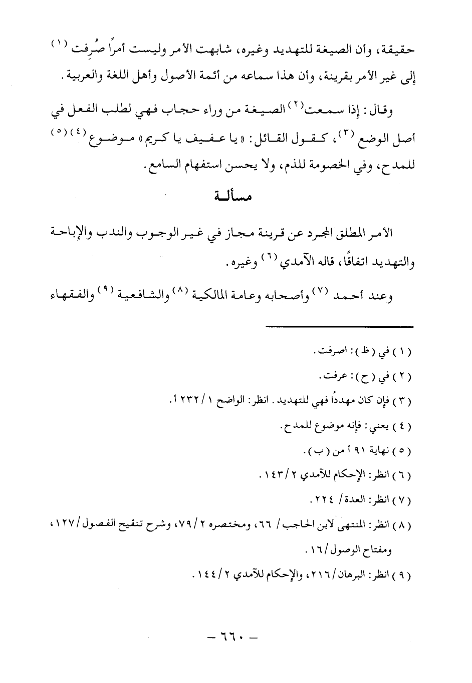 (٨) انظر: المنتهى لابن الحاجب/ ٦٦، ومختصره ٢/ ٧٩، وشرح تنقيح الفصول / ١٢٧، ومفتاح الوصول/ ١٦.