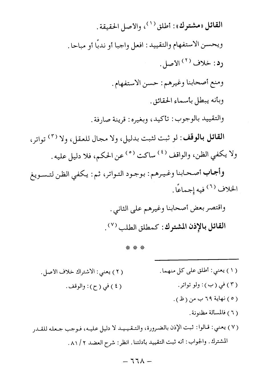 القائل بالإِذن المشترك: كمطلق الطلب (٧).