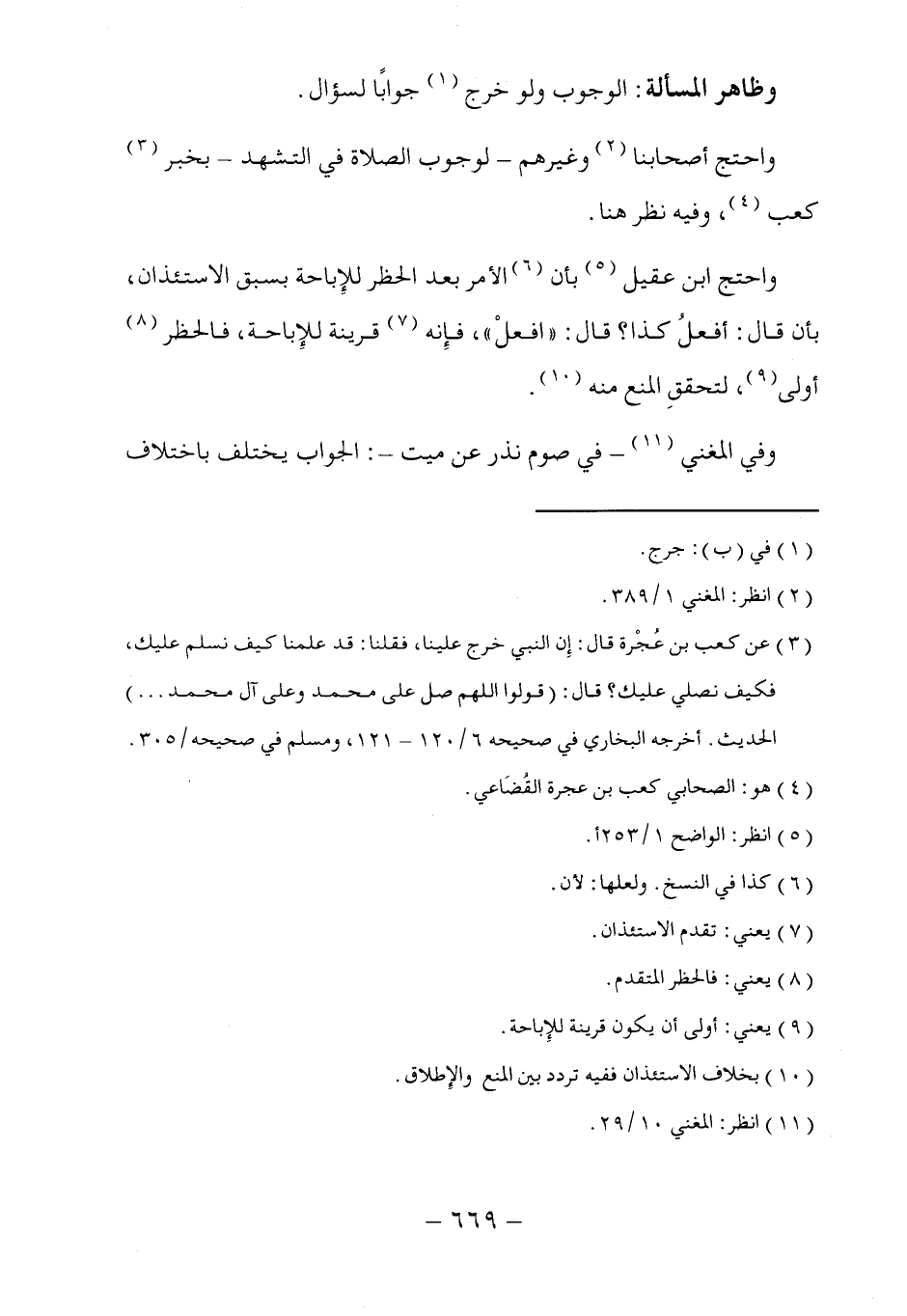 واحتج أصحابنا (٢) وغيرهم -لوجوب الصلاة في التشهد- بخبر (٣) كعب (٤)، وفيه نظر هنا.