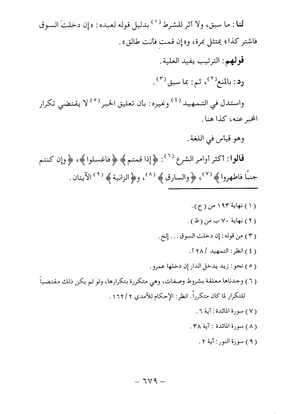 (٦) وجدناها معلقة بشروط وصفات، وهي متكررة بتكرارها، ولو لم يكن ذلك مقتضياً للتكرار لما كان متكرراً. انظر: الإحكام للآمدي ٢/ ١٦٢.