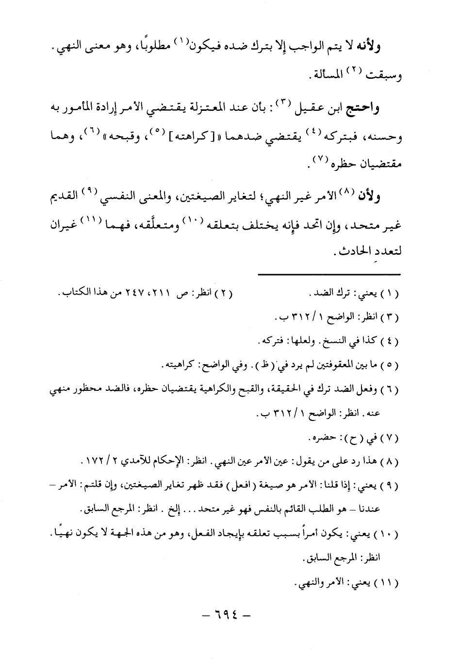 (٨) هذا رد على من يقول: عين الأمر عين النهي. انظر: الإِحكام للآمدي ٢/ ١٧٢.