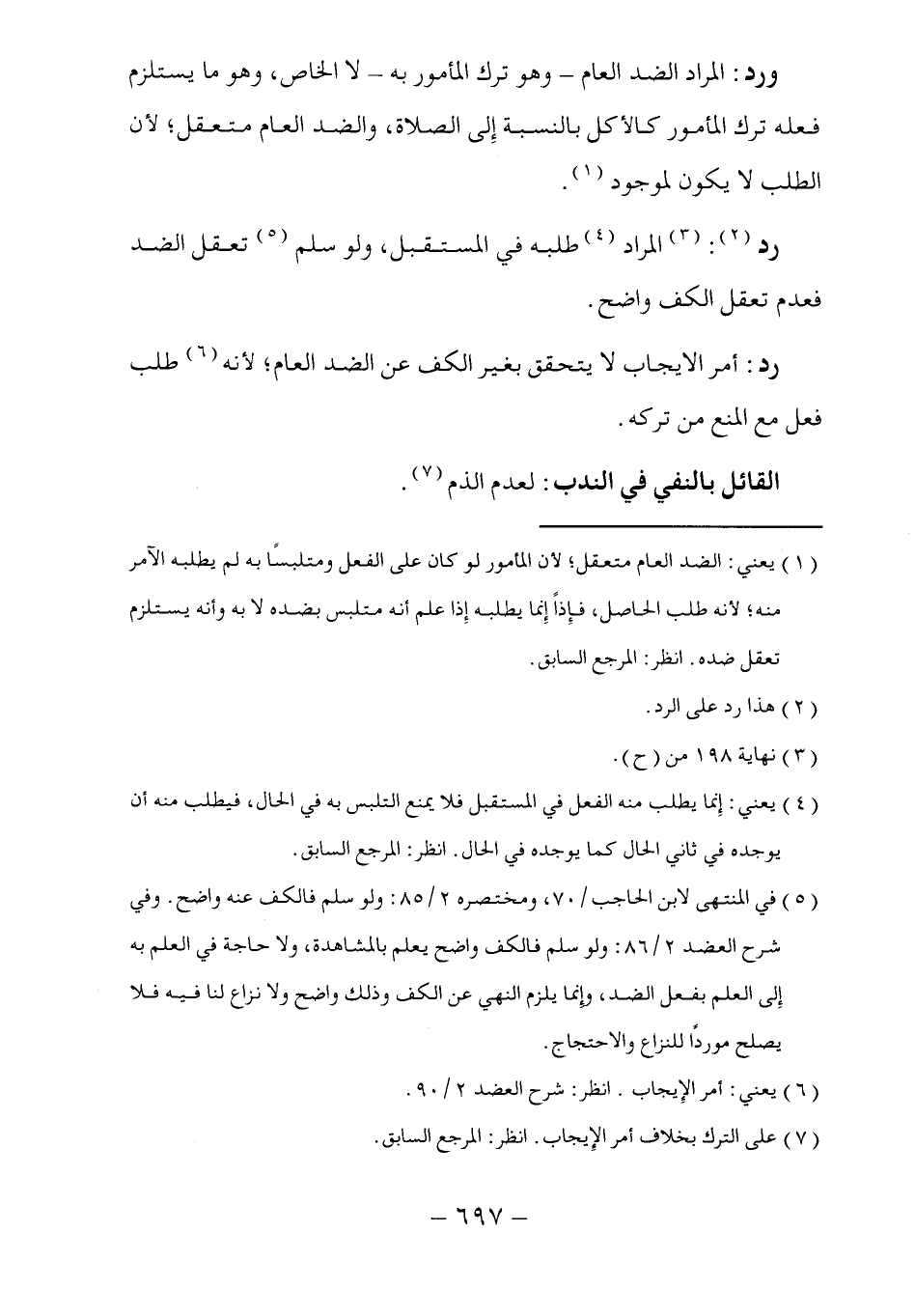 رد: أمر الإيجاب لا يتحقق بغير الكف عن الضد العام؛ لأنه (٦) طلب فعل مع المنع من تركه.