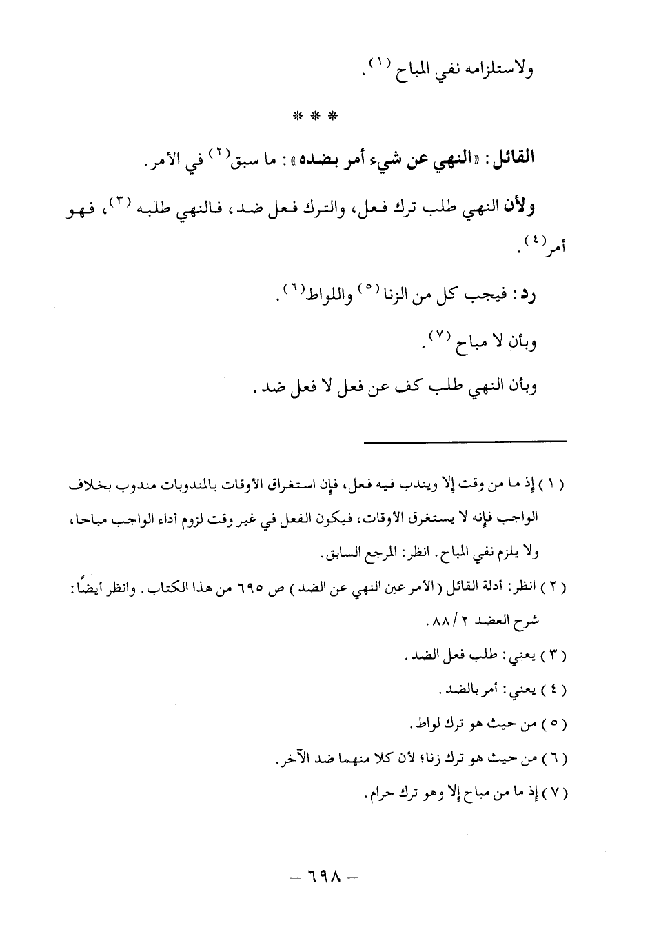 (٢) انظر: أدلة القائل (الأمر عين النهي عن الضد) ص ٦٩٥ من هذا الكتاب. وانظر أيضًا: شرح العضد ٢/ ٨٨.