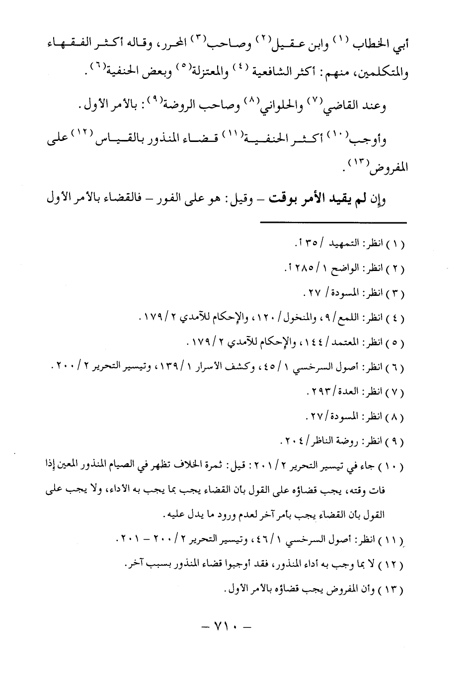 (١٣) وأن المفروض يجب قضاؤه بالأمر الأول.