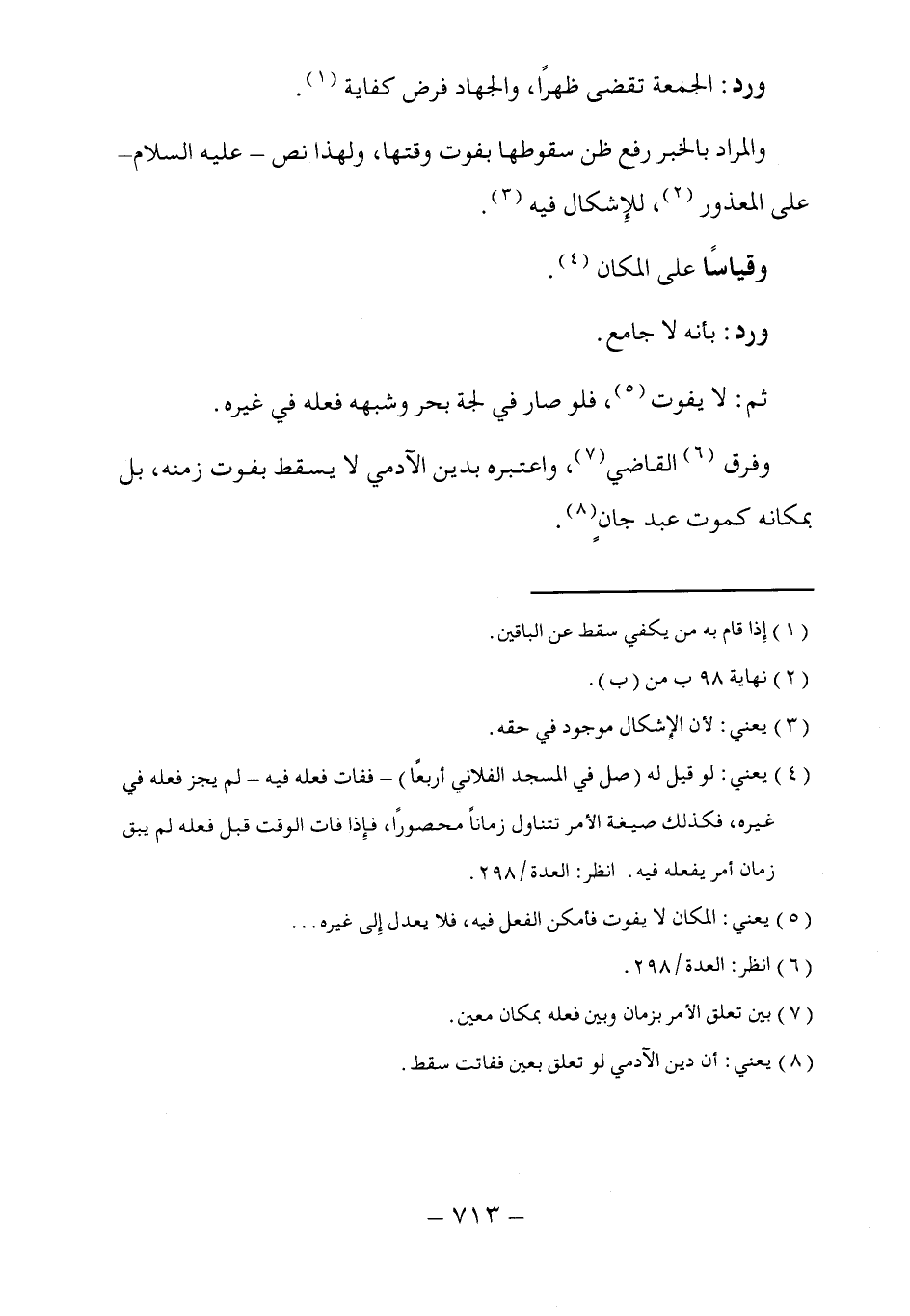 ورد: الجمعة تقضى ظهرًا، والجهاد فرض كفاية (١).
