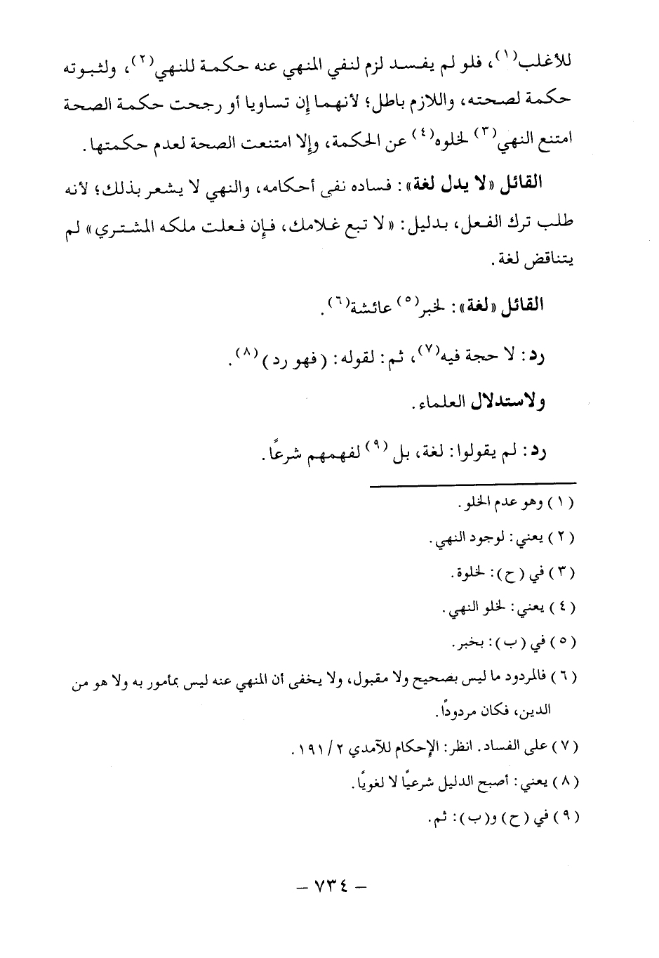 القائل "لا يدل لغة": فساده نف أحكامه، والنهي لا يشعر بذلك؛ لأنه طلب ترك الفعل، بدليل: "لا تبع غلامك، فإِن فعلت ملكه المشتري" لم يتناقض لغة.