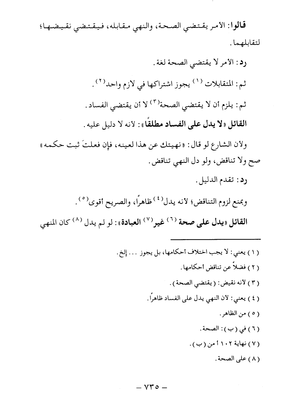 قالوا: الأمر يقتضي الصحة، والنهي مقابله، فيقتضي نقيضها؛ لتقابلهما.