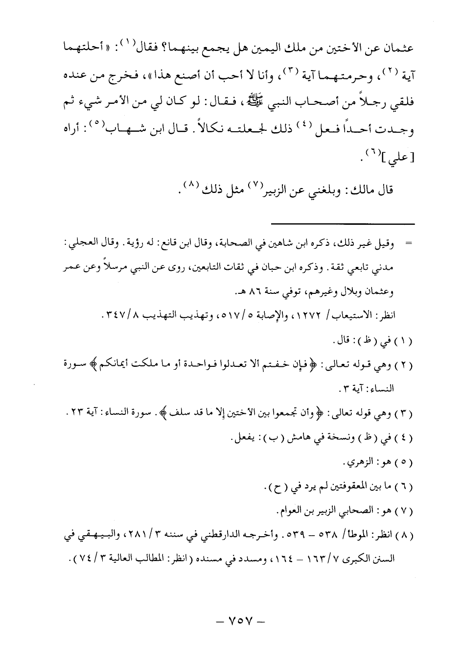 (٨) انظر: الموطأ/ ٥٣٨ - ٥٣٩. وأخرجه الدارقطني في سننه ٣/ ٢٨١، والبيهقي في السنن الكبرى ٧/ ١٦٣ - ١٦٤، ومسدد في مسنده (انظر: المطالب العالية ٣/ ٧٤).