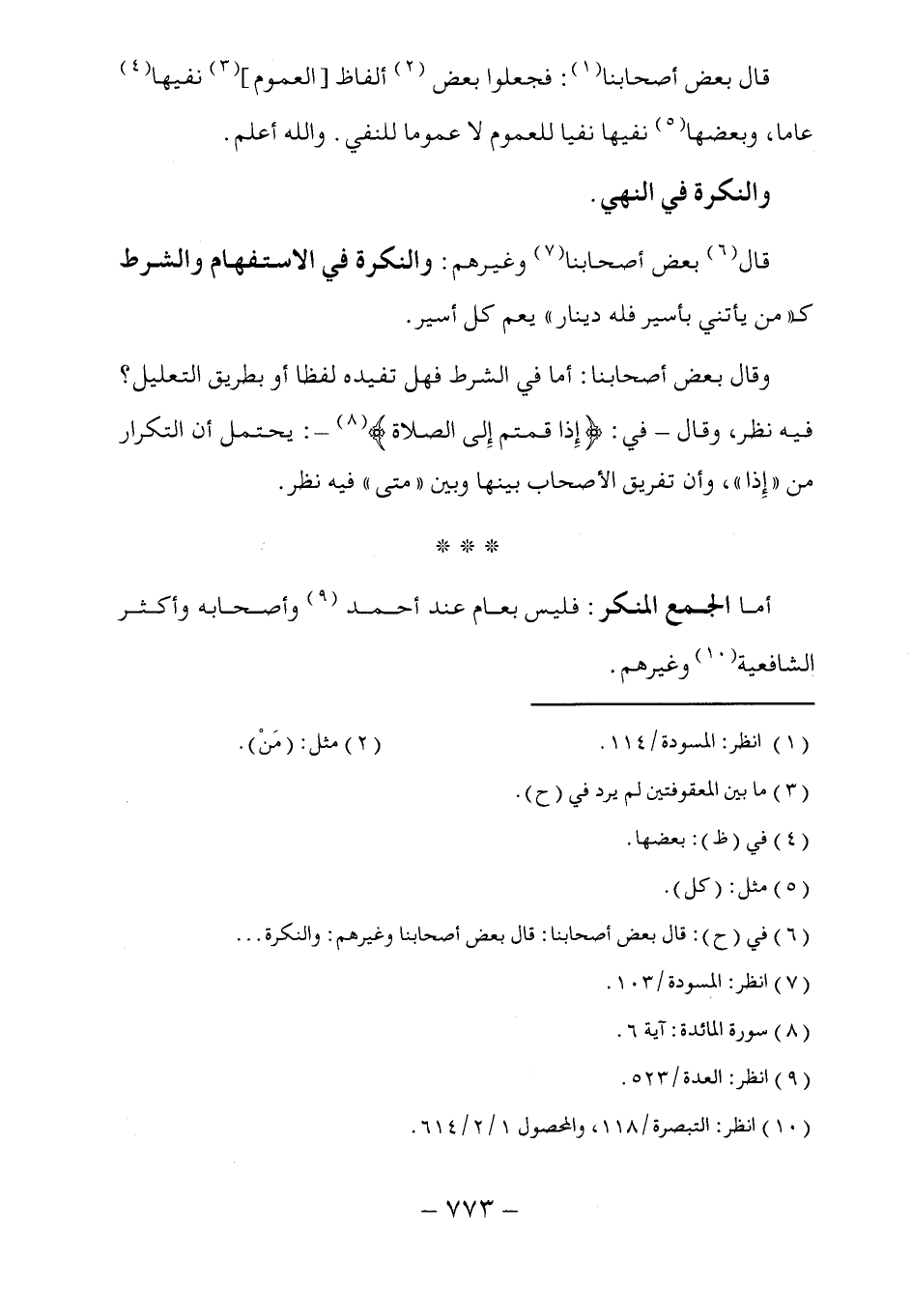(٦) في (ح): قال بعض أصحابنا: قال بعض أصحابنا وغيرهم: والنكرة ...