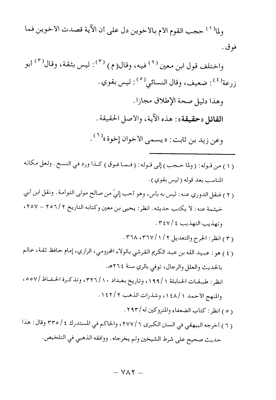 (١) من قوله: (ولما حجب) إلى قوله: (فما فوق) كذا ورد في النسخ. ولعل مكانه المناسب بعد قوله (ليس بقوي).
