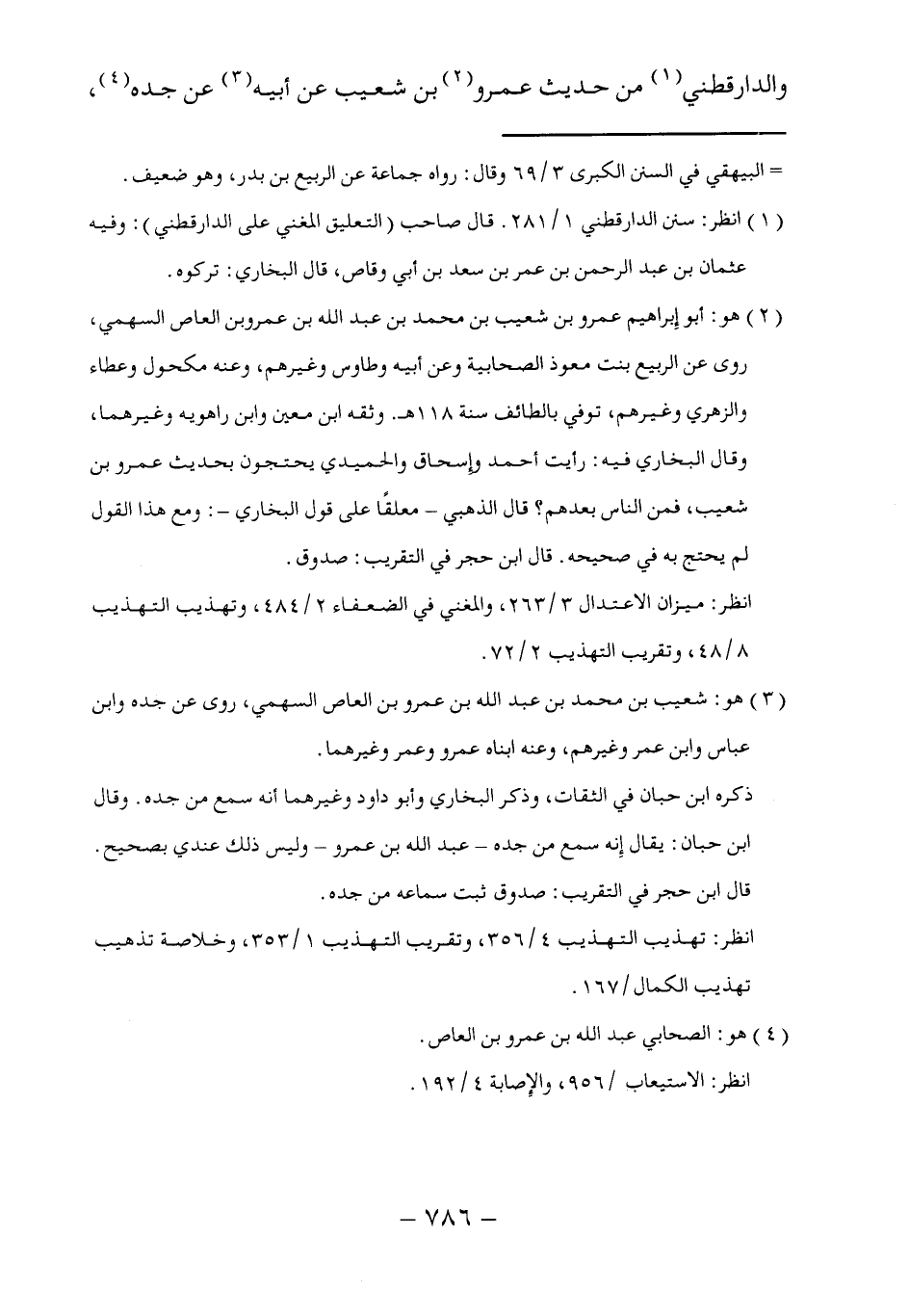 (٣) هو: شعيب بن محمَّد بن عبد الله بن عمرو بن العاص السهمي، روى عن جده وابن عباس وابن عمر وغيرهم، وعنه ابناه عمرو وعمر وغيرهما.