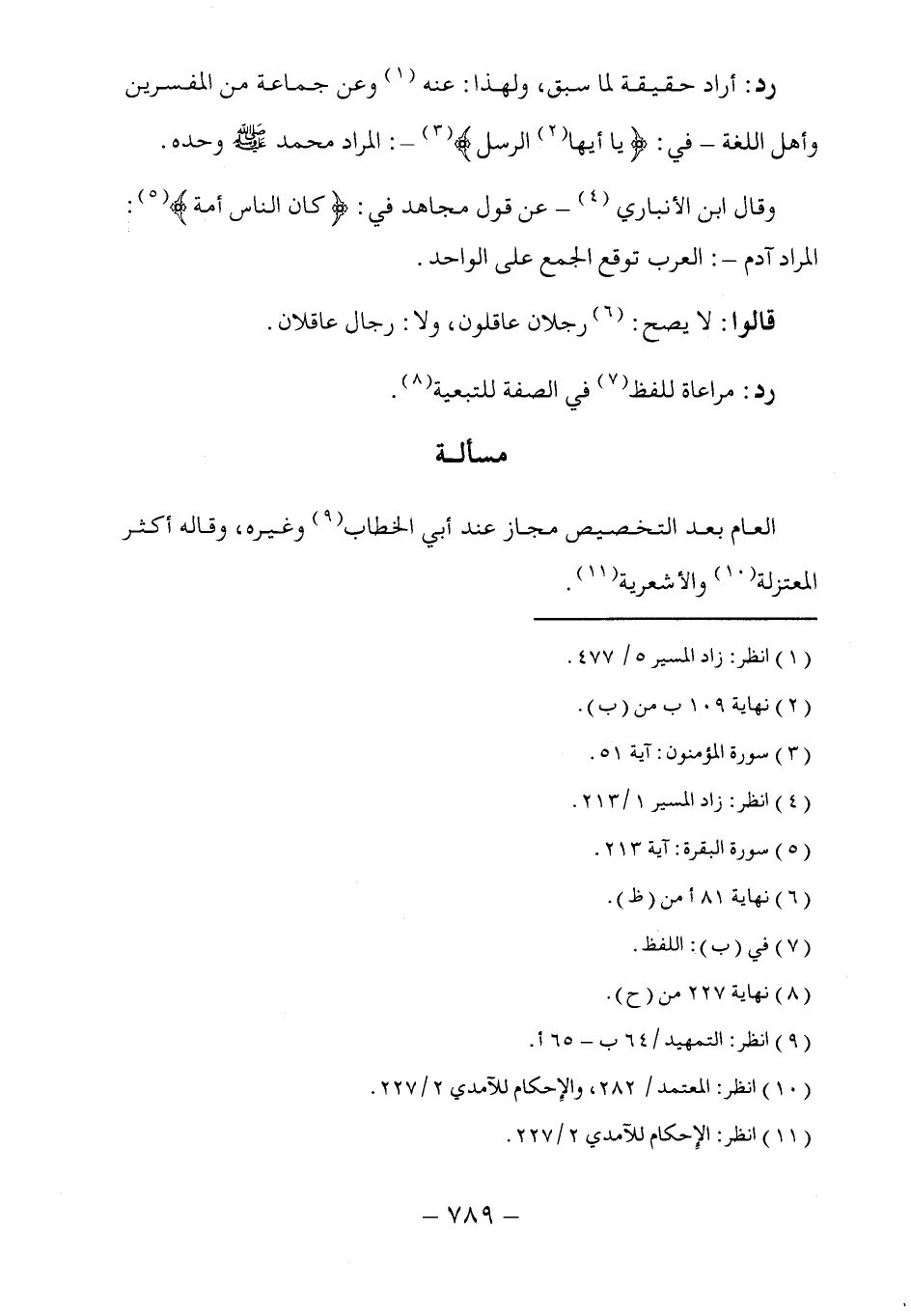 (١١) انظر. الإِحكام للآمدي ٢/ ٢٢٧.
