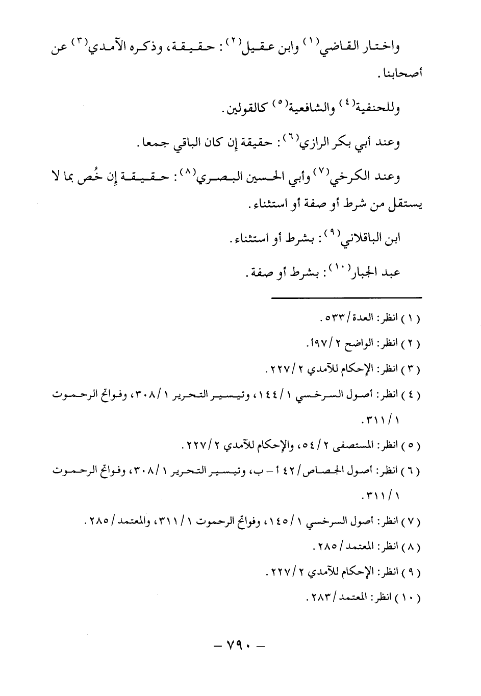 ابن الباقلاني (٩): بشرط أو استثناء.