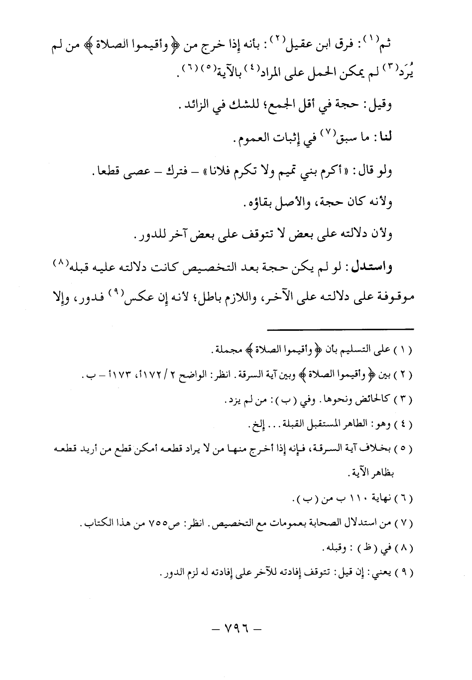 ثم (١): فرق ابن عقيل (٢): بأنه إِذا خرج من (وأقيموا الصلاة) من لم يُرَد (٣) لم يمكن الحمل على المراد (٤) بالآية (٥) (٦).