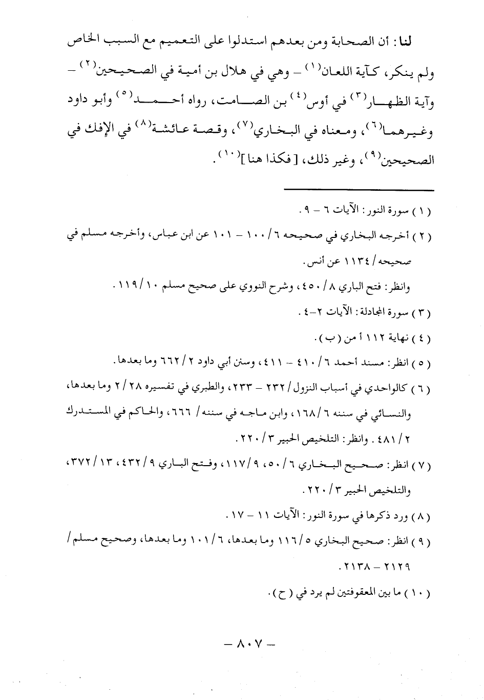 (٧) انظر: صحيح البخاري ٦/ ٥٠، ٩/ ١١٧، وفتح الباري ٩/ ٤٣٢، ١٣/ ٣٧٢، والتلخيص الحبير ٣/ ٢٢٠.