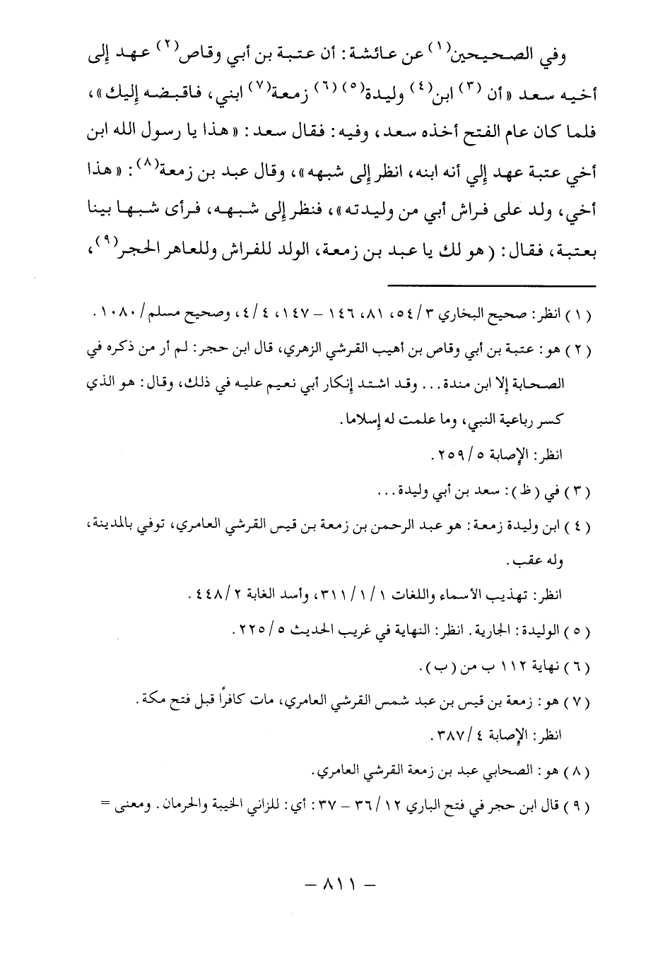 (٨) هو: الصحابي عبد بن زمعة القرشي العامري.