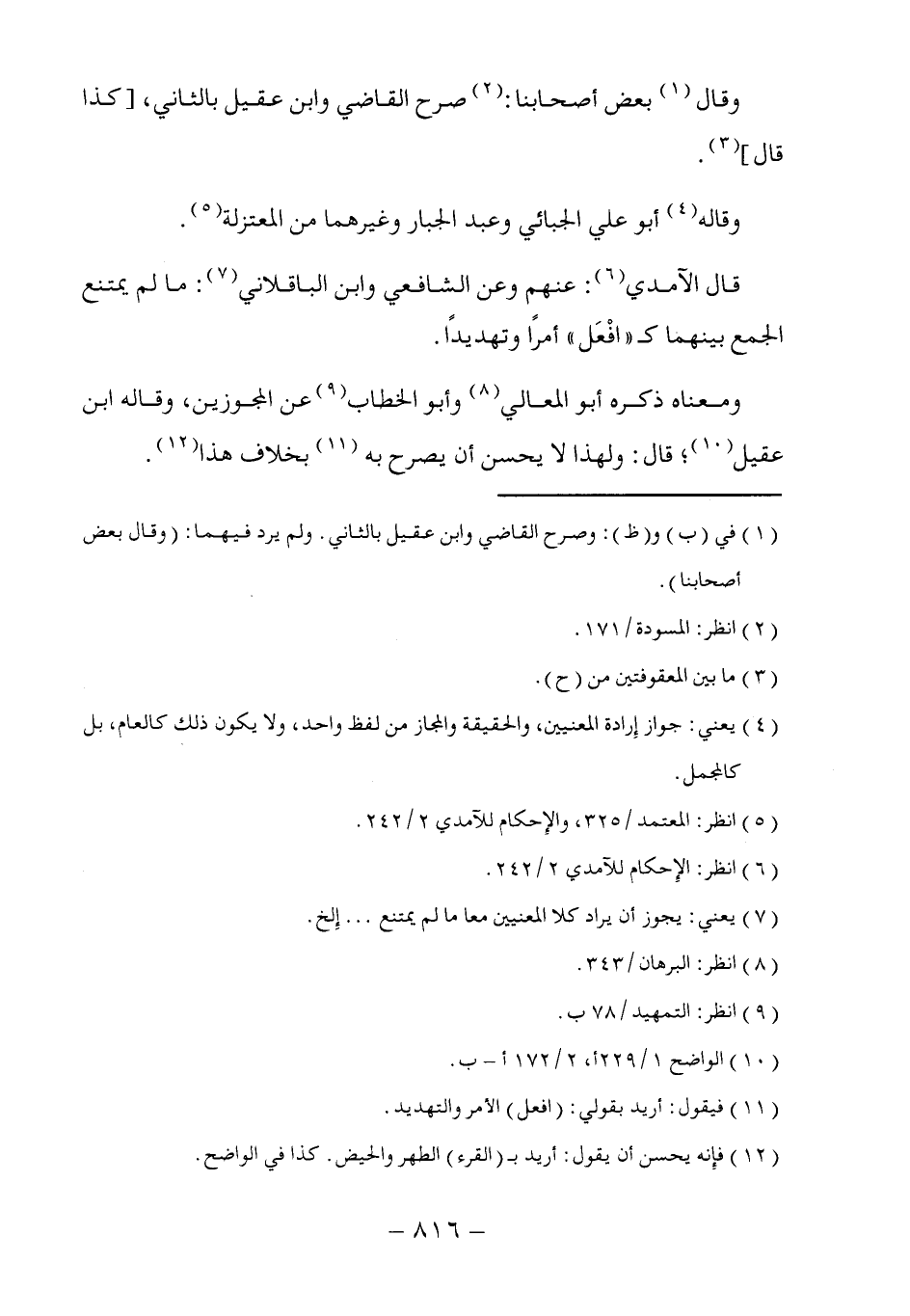 (٧) يعني: يجوز أن يراد كلا المعنيين معا ما لم يمتنع ... إِلخ.