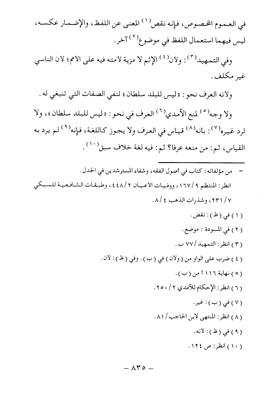 (٨) انظر: المنتهى لابن الحاجب/ ٨١.