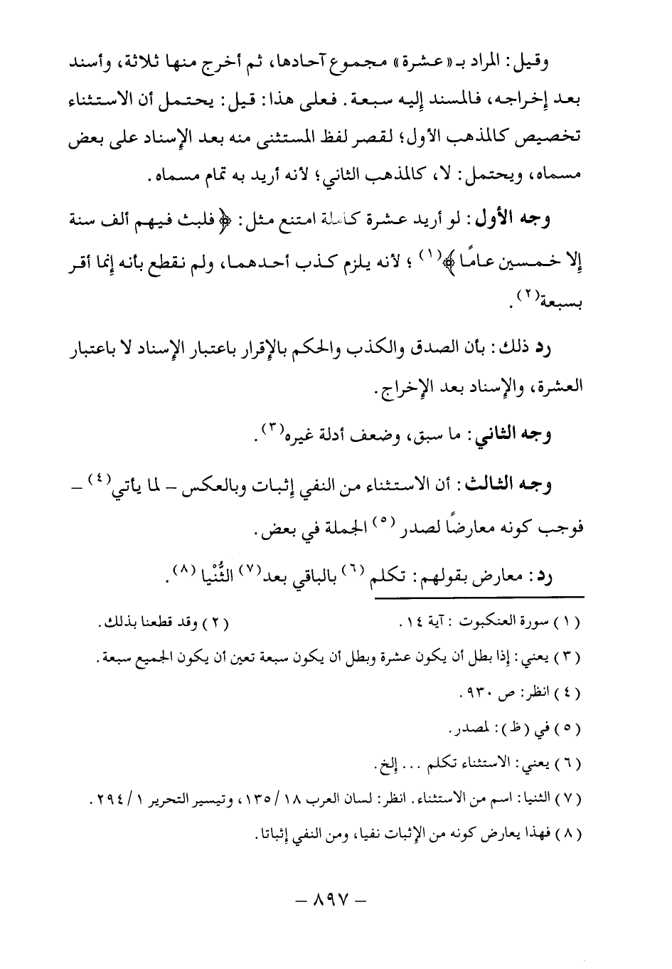 رد: معارض بقولهم: تكلم (٦) بالباقي بعد (٧) الثُّنْيا (٨).