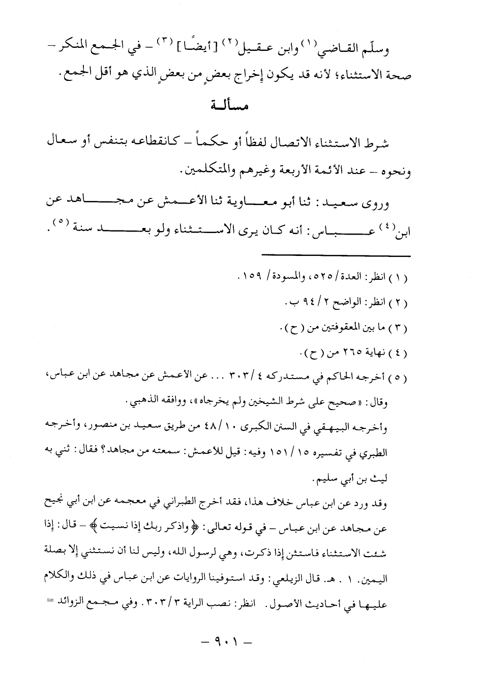 شرط الاستثناء الاتصال لفظاً أو حكماً -كانقطاعه بتنفس أو سعال ونحوه- عند الأئمة الأربعة وغيرهم والمتكلمين.