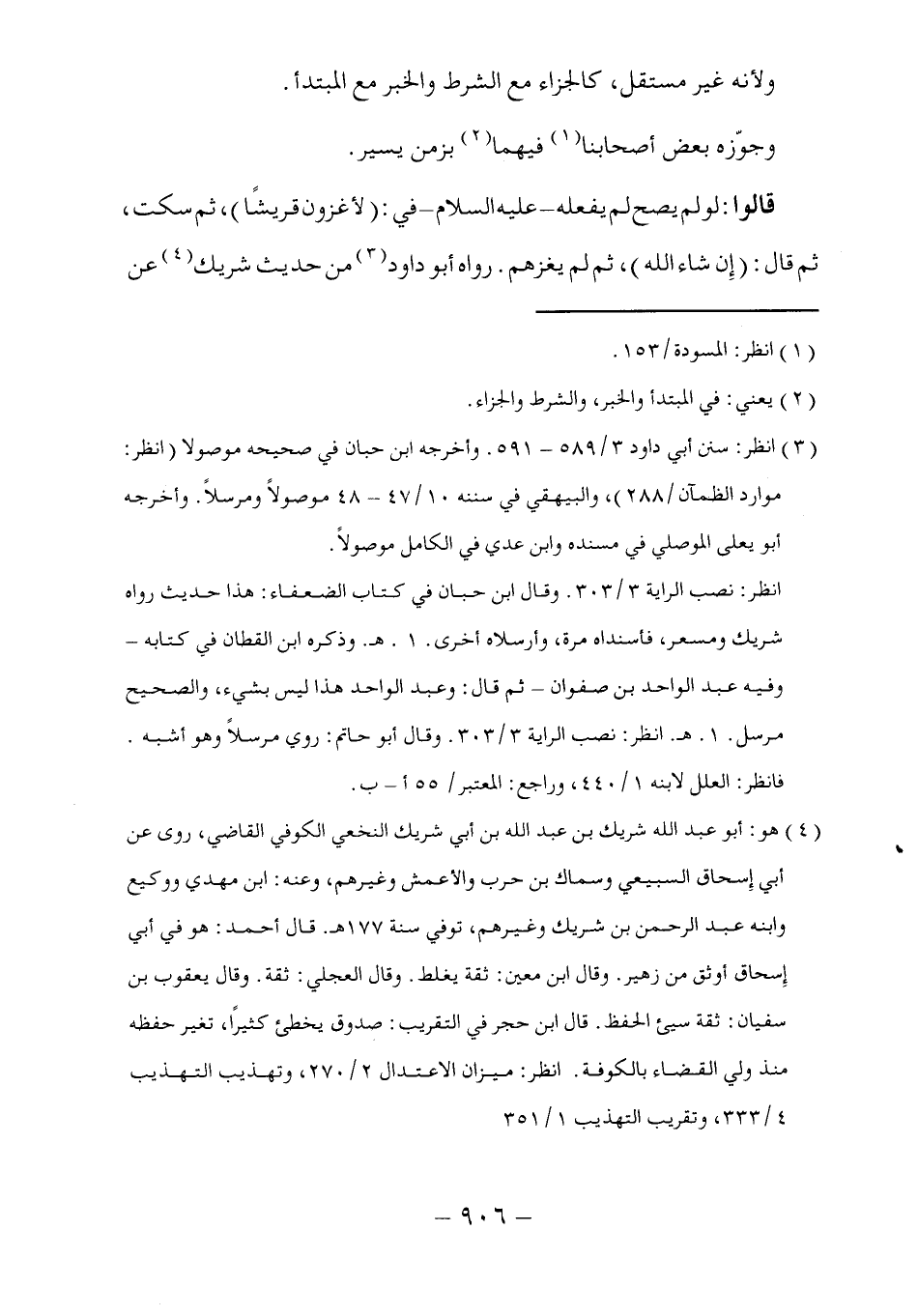 قالو ا: لو لم يصح لم يفعله - عليه السلام - في: (لأغزون قريشًا)، ثم سكت، قال: (إِن شاء الله)، ثم لم يغزهم. رواه أبو داود (٣) من حديث شريك (٤) عن