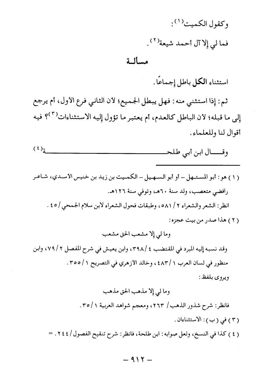 (٤) كذا في النسخ، ولعل صوابه: ابن طلحة، فانظر: شرح تنقيح الفصول/ ٢٤٤.=