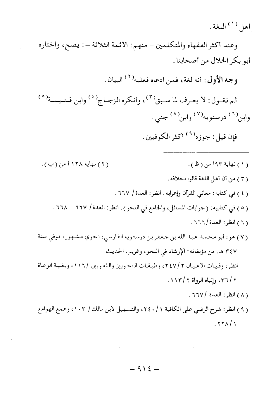 ثم نقول: لا يعرف لما سبق (٣)، وأنكره الزجاج (٤) وابن قتيبة (٥) وابن (٦) درستويه (٧) وابن (٨) جني.