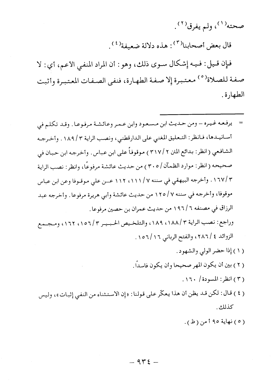 فإِن قيل: فيه إِشكال سوى ذلك، وهو: أن المراد المنفي الأعم، أي: لا صفة للصلاة (٥) معتبرة إِلا صفة الطهارة، فنفى الصفات المعتبرة وأثبت الطهارة.