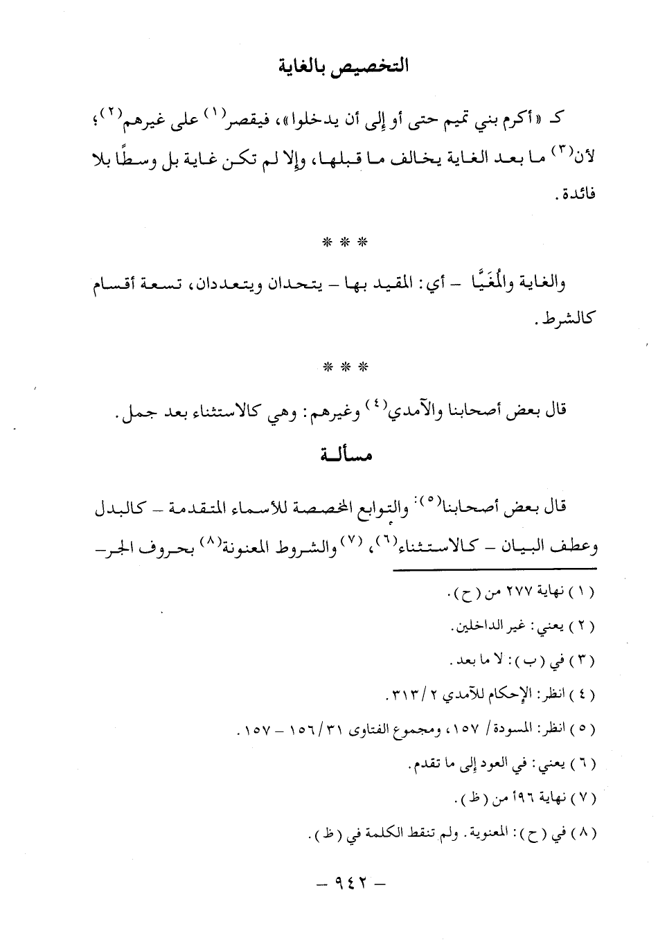 قال بعض أصحابنا (٥): والتوابع المخصصة للأسماء المتقدمة -كالبدل وعطف البيان- كالاستثناء (٦)، (٧) والشروط المعنونة (٨) بحروف الجر
