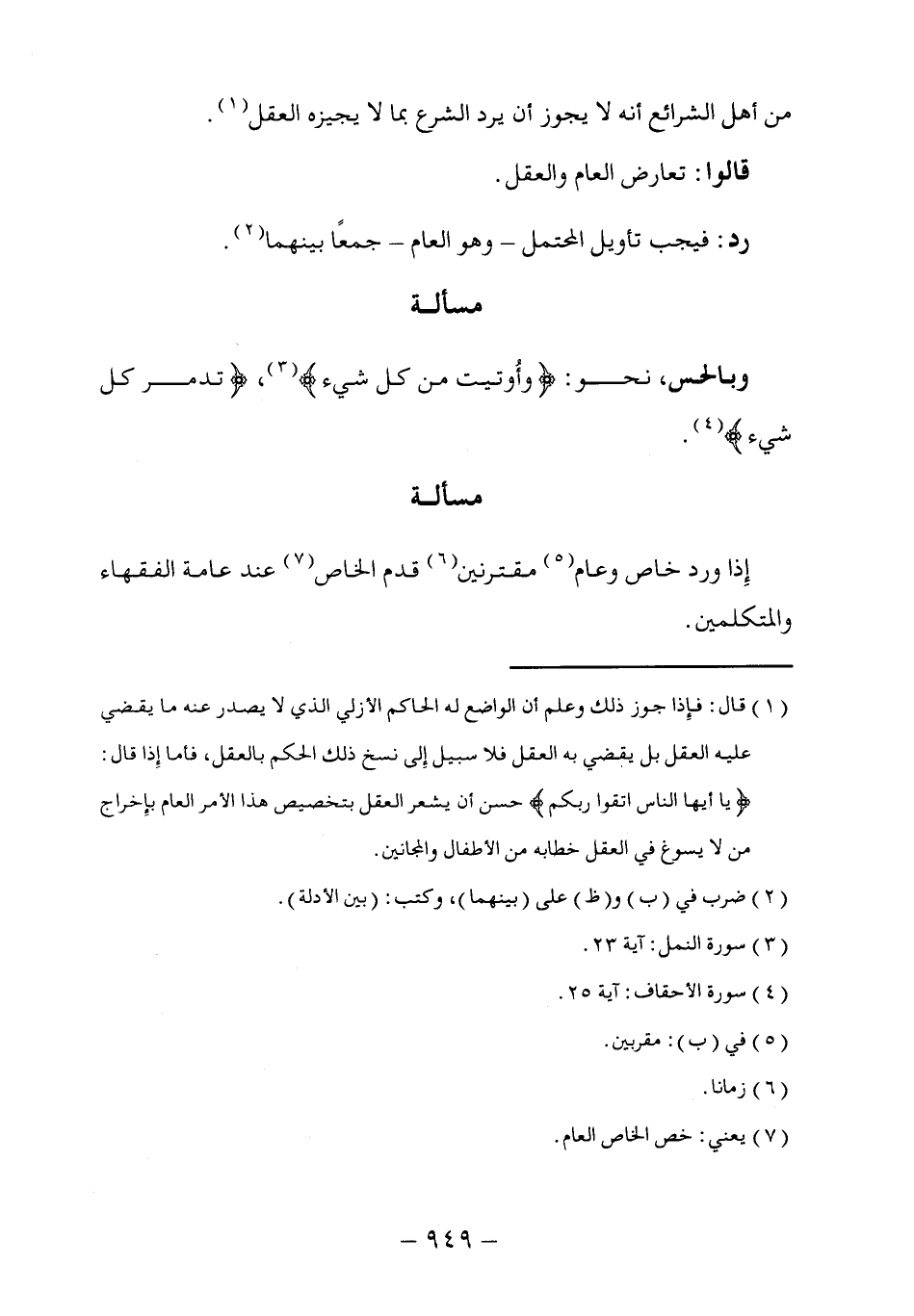 إِذا ورد خاص وعام (٥) مقترنين (٦) قدم الخاص (٧) عند عامة الفقهاء والمتكلمين.