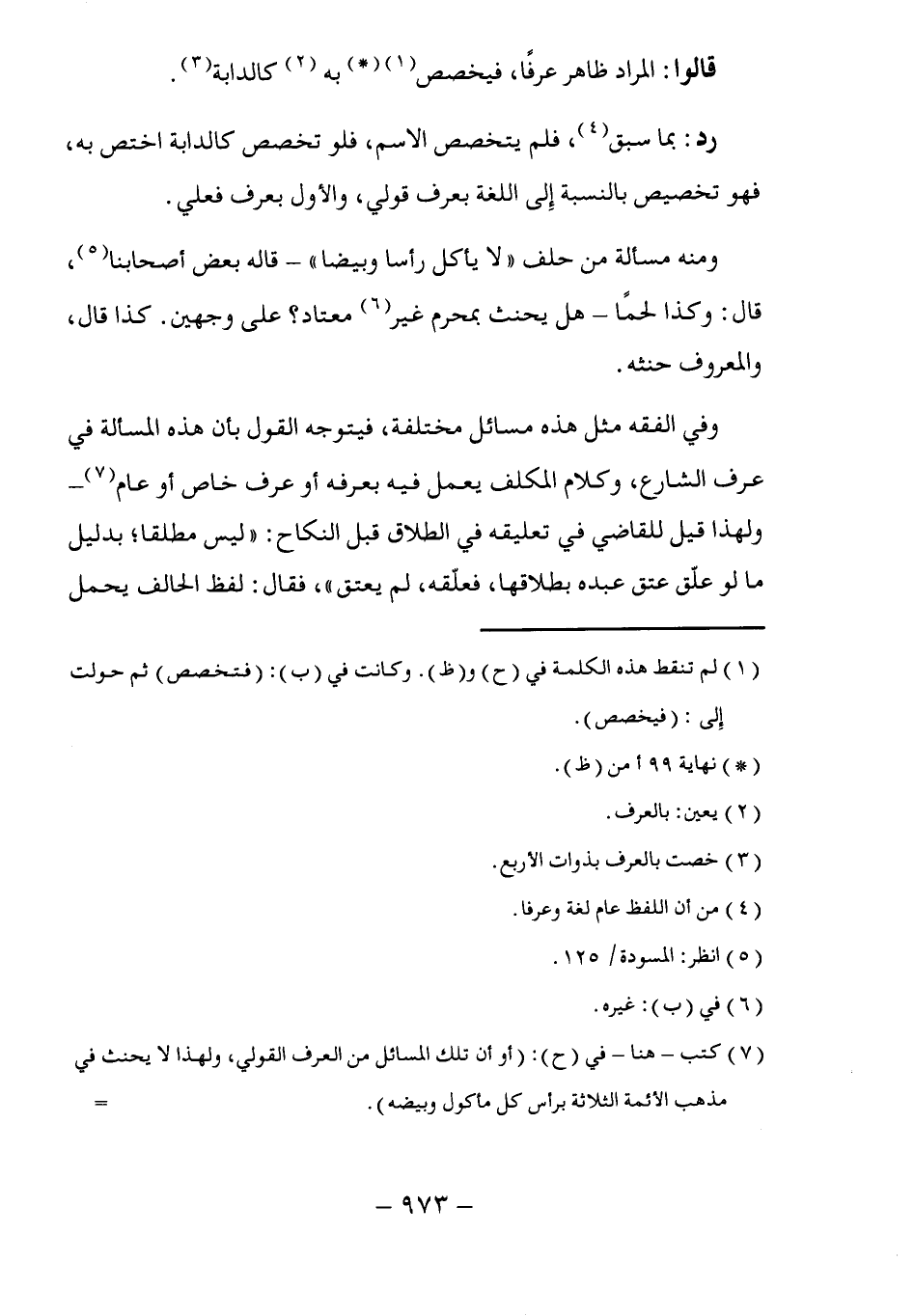 (٧) كتب -هنا- في (ح): (أو أن تلك المسائل من العرف القولي، ولهذا لا يحنث في مذهب الأئمة الثلاثة برأس كل مأكول وبيضه).=