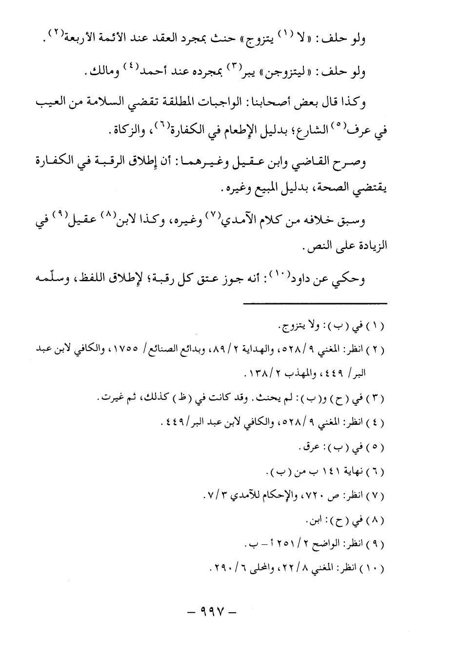 (١٠) انظر: المغني ٨/ ٢٢، والمحلى ٦/ ٢٩٠.
