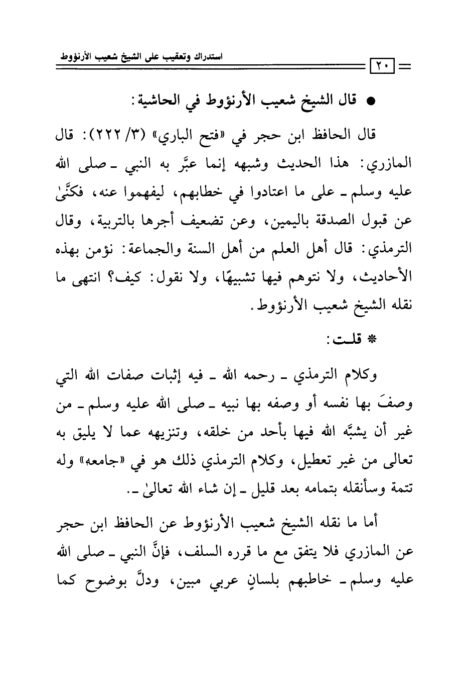 كتاب استدراك وتعقيب على الشيخ شعيب الأرنؤوط في تأويله بعض أحاديث الصفات