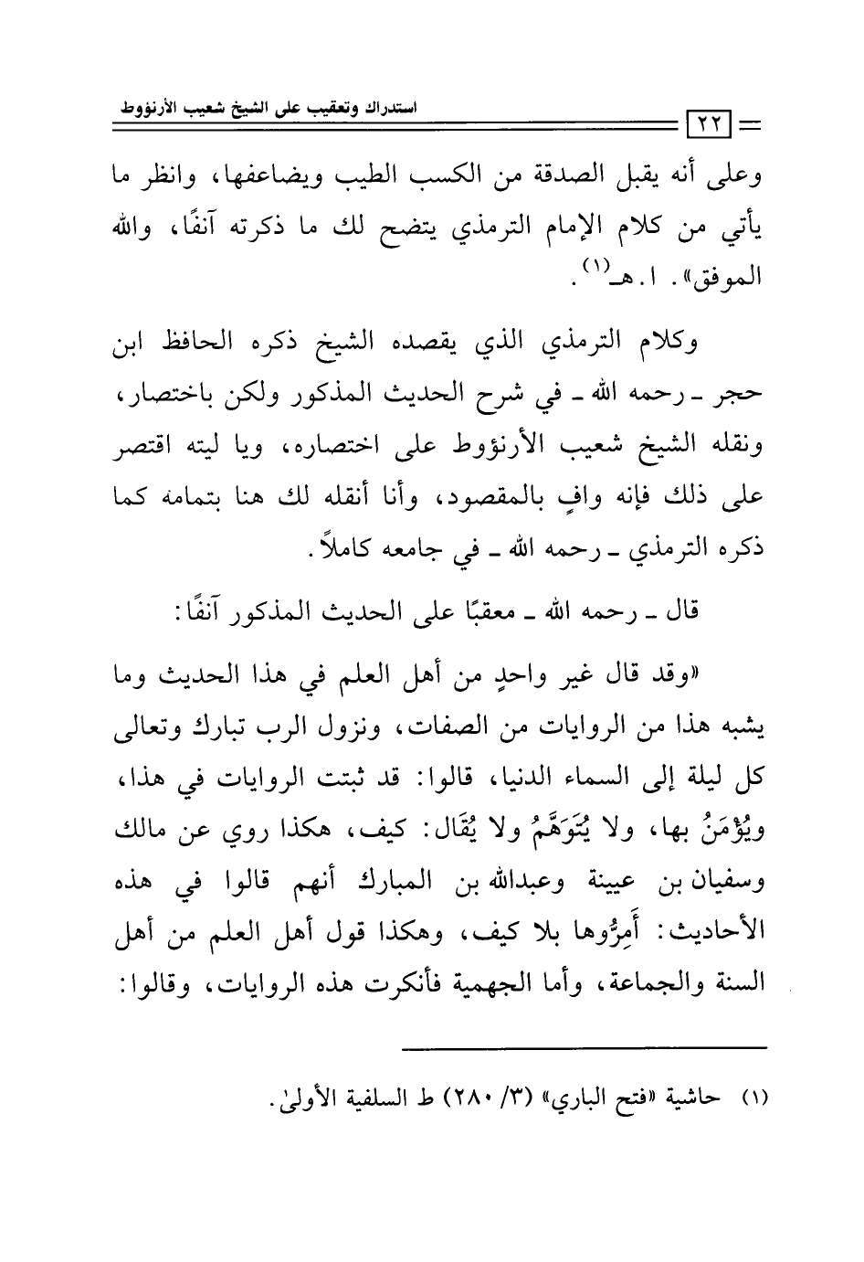 كتاب استدراك وتعقيب على الشيخ شعيب الأرنؤوط في تأويله بعض أحاديث الصفات